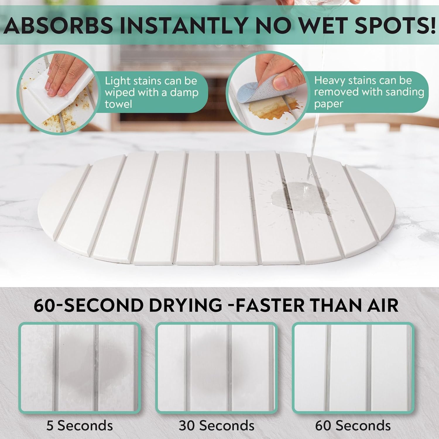 - Revolutionary Stone Drying Mat - Upgrade your kitchen with our drying stone 24x16. Made from food-grade diatomaceous earth, this drying stone for kitchen counter absorbs water instantly, keeping countertops dry, clean, and spotless after every use