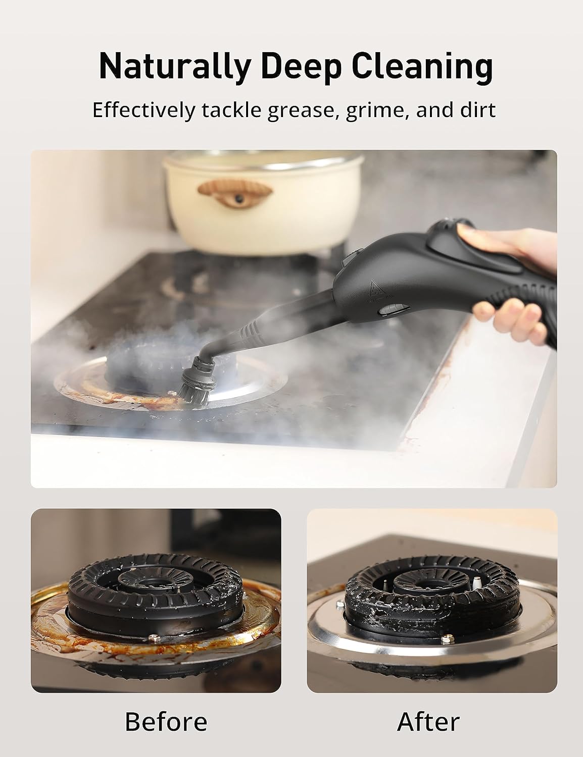 - 𝐂𝐡𝐞𝐦𝐢𝐜𝐚𝐥-𝐅𝐫𝐞𝐞 𝐂𝐥𝐞𝐚𝐧𝐢𝐧𝐠: No need for additional use of harsh chemicals, steam cleaner for home utilizes high-temperature and high-pressure steam for natural deep cleaning, insuring a friendly environment for all homes with kids, pets or anyone with allergies.