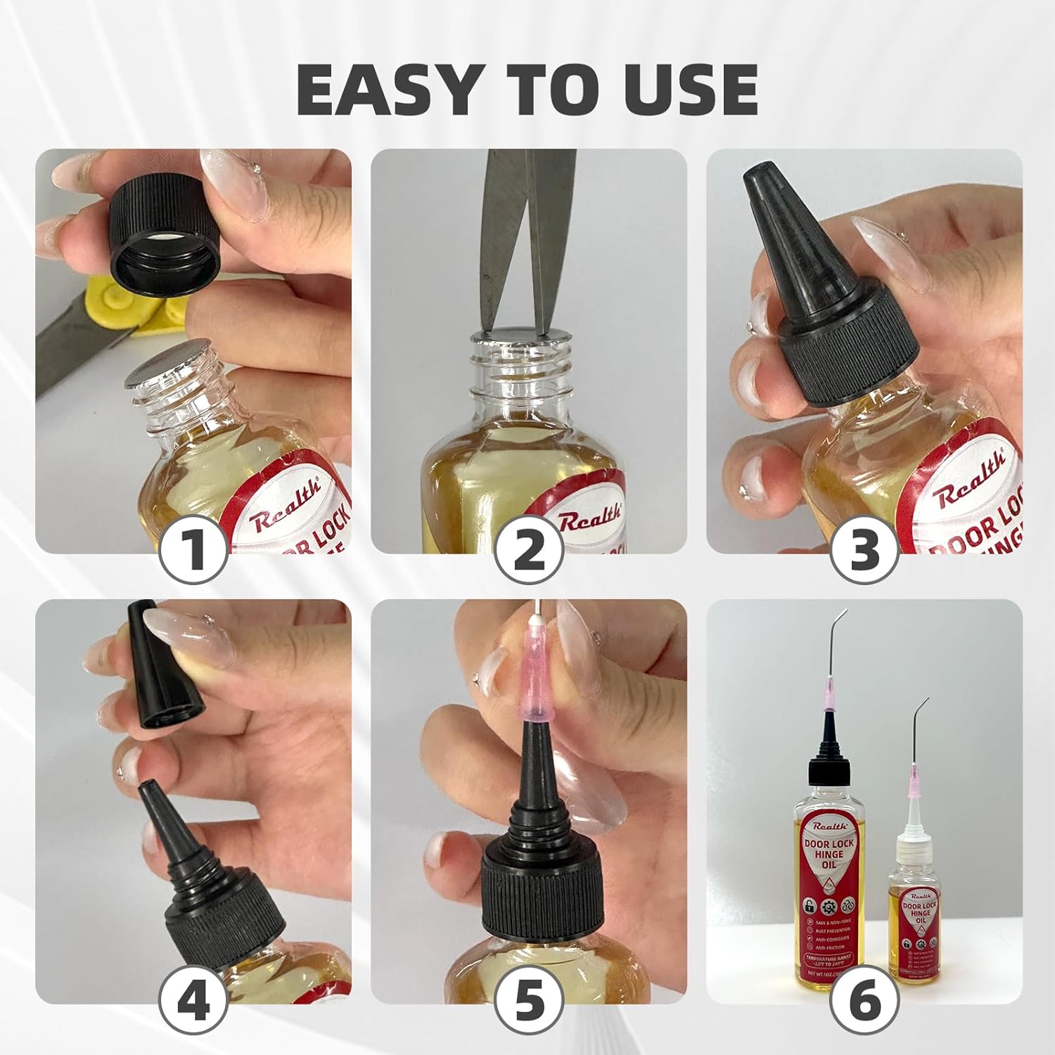 - Extend Lifespan, Reduce Maintenance:One drop lasts longer than spray lubricants. Prevent costly repairs on garage doors, locks, and machinery with Realth’s pro-grade oil.