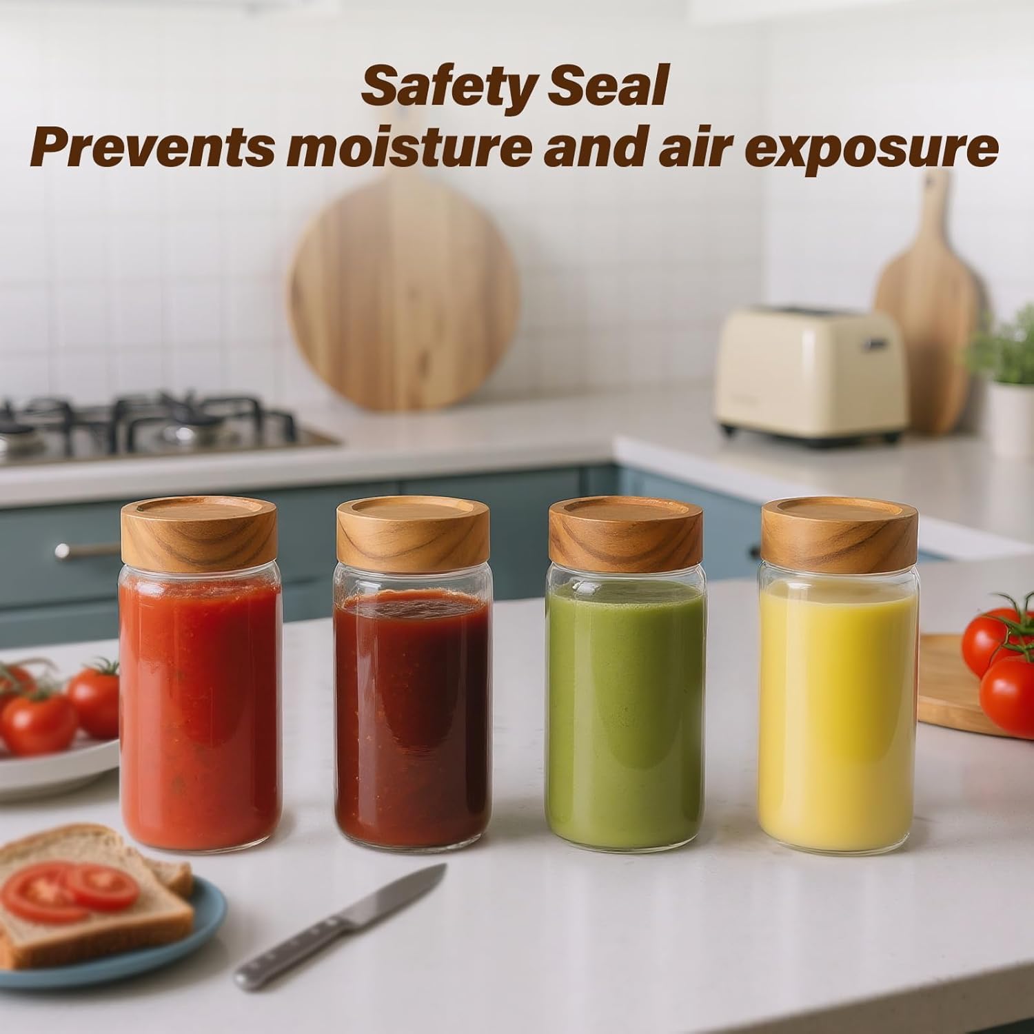 - 【Airtight & Freshness Lock】 – The acacia wood lids create a secure seal, preventing moisture and air exposure to keep contents dry and fresh longer than plastic containers.