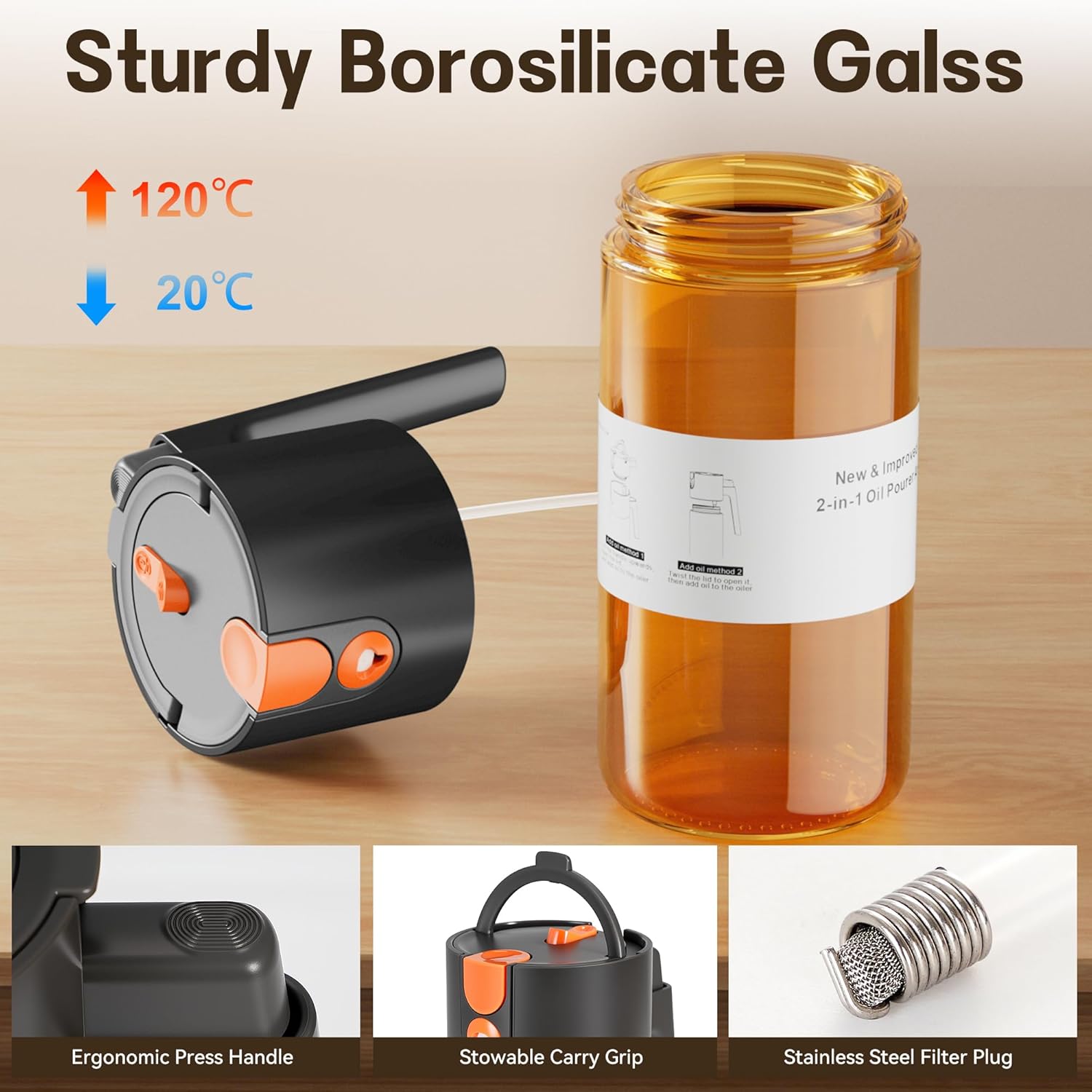 - Dual-Switch Upgrade: Moves beyond traditional sliding oil pour switches. Our press-button design is friendly to fingernail; And the spray switch integrates smoothly into the handle—enhancing both aesthetics and ease of cleaning.