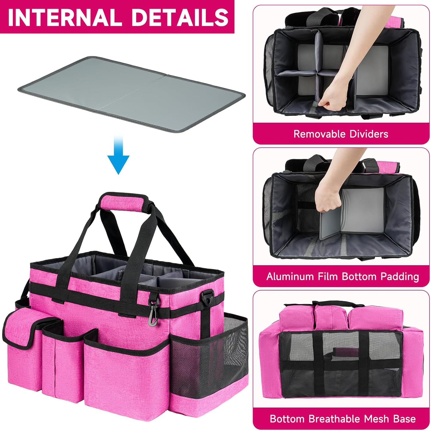 - Removable Padded Cushion: Unlike other fixed compartments, this cleaning caddy for cleaning supplies is designed with removable padded divider, which can help you use the space widely and make your items well-organized