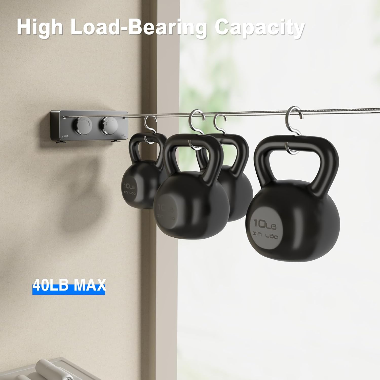 - 【Large Capacity & Heavy Duty】The double line's longest length is 13.8 feet, and there is enough space to hang your clothes, socks, quilts, etc. This Clothesline can also hold a maximum weight of 40 pounds; you don't need to worry about hanging clothes that are too heavy to cause the line to fall.