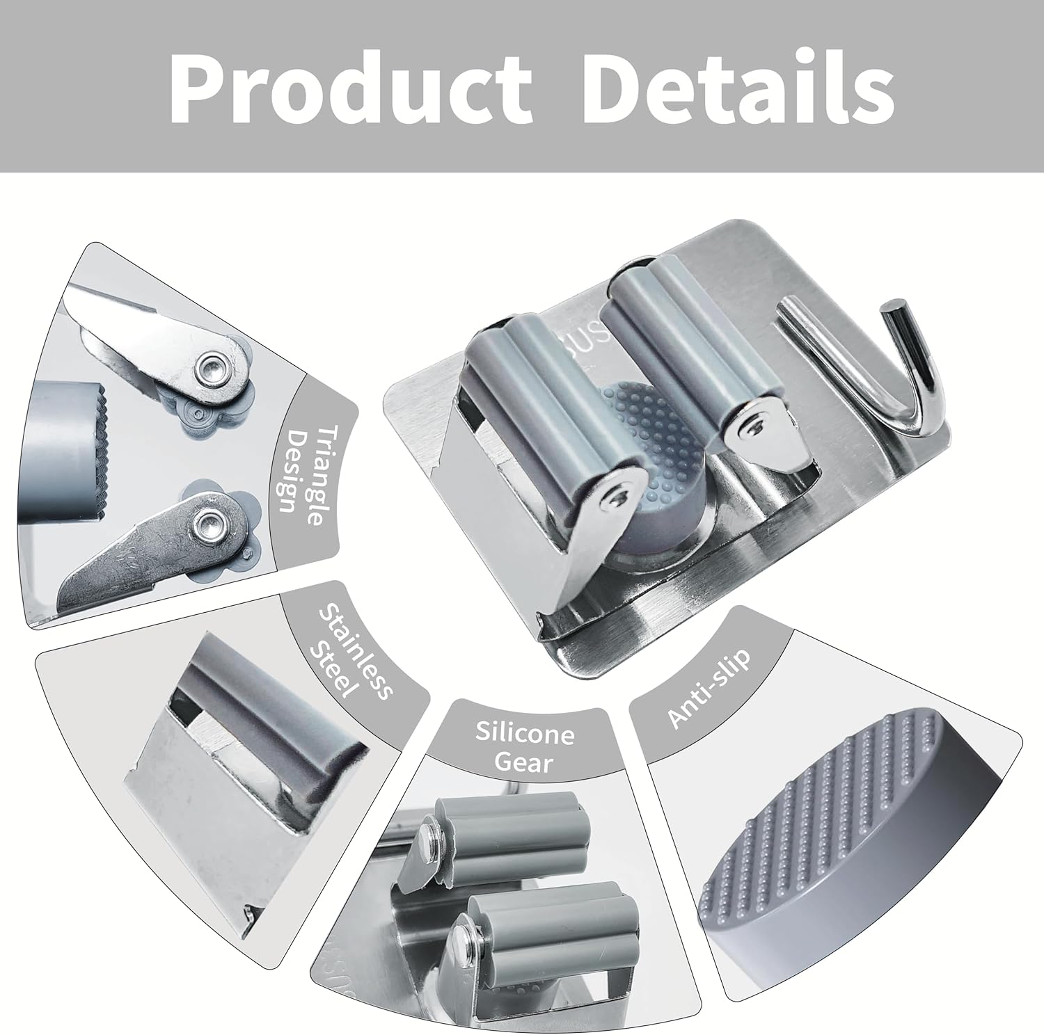 - Multi-purpose Storage: Self adhesive broom organizer wall mount is helpful to organize the mop, broom, umbrella, brush, shovel and other tools, keeping your home clean. The hooks can hang a variety of daily items, improving storage space.