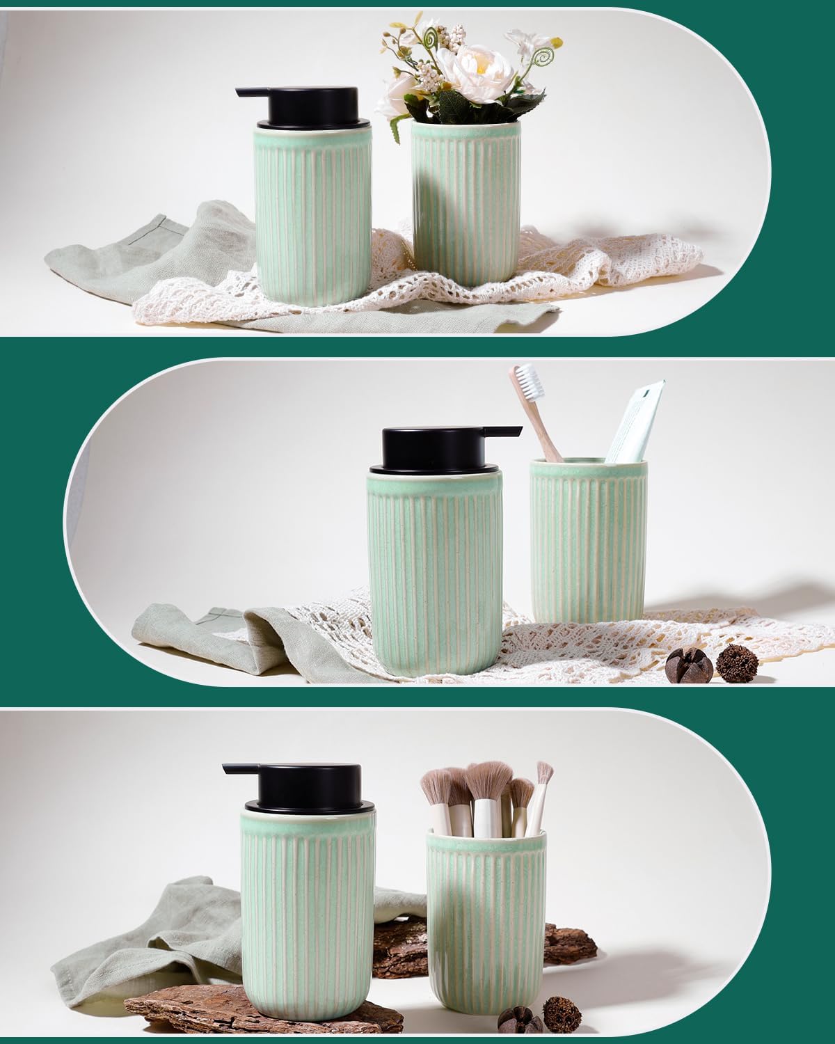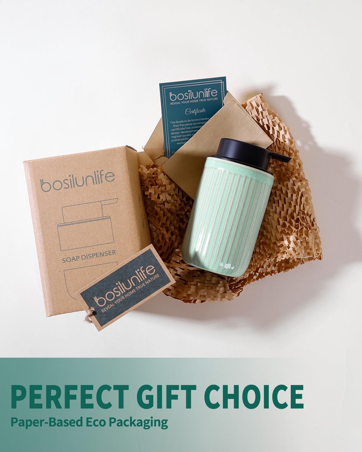 BosilunLife Foam Hand Soap Dispenser - Ceramic Foaming Soap Dispenser for Bathroom 12oz Refillable Liquid Lotion Soap Dispenser with Rust-Proof Foaming Pump for Countertop (Light Green)