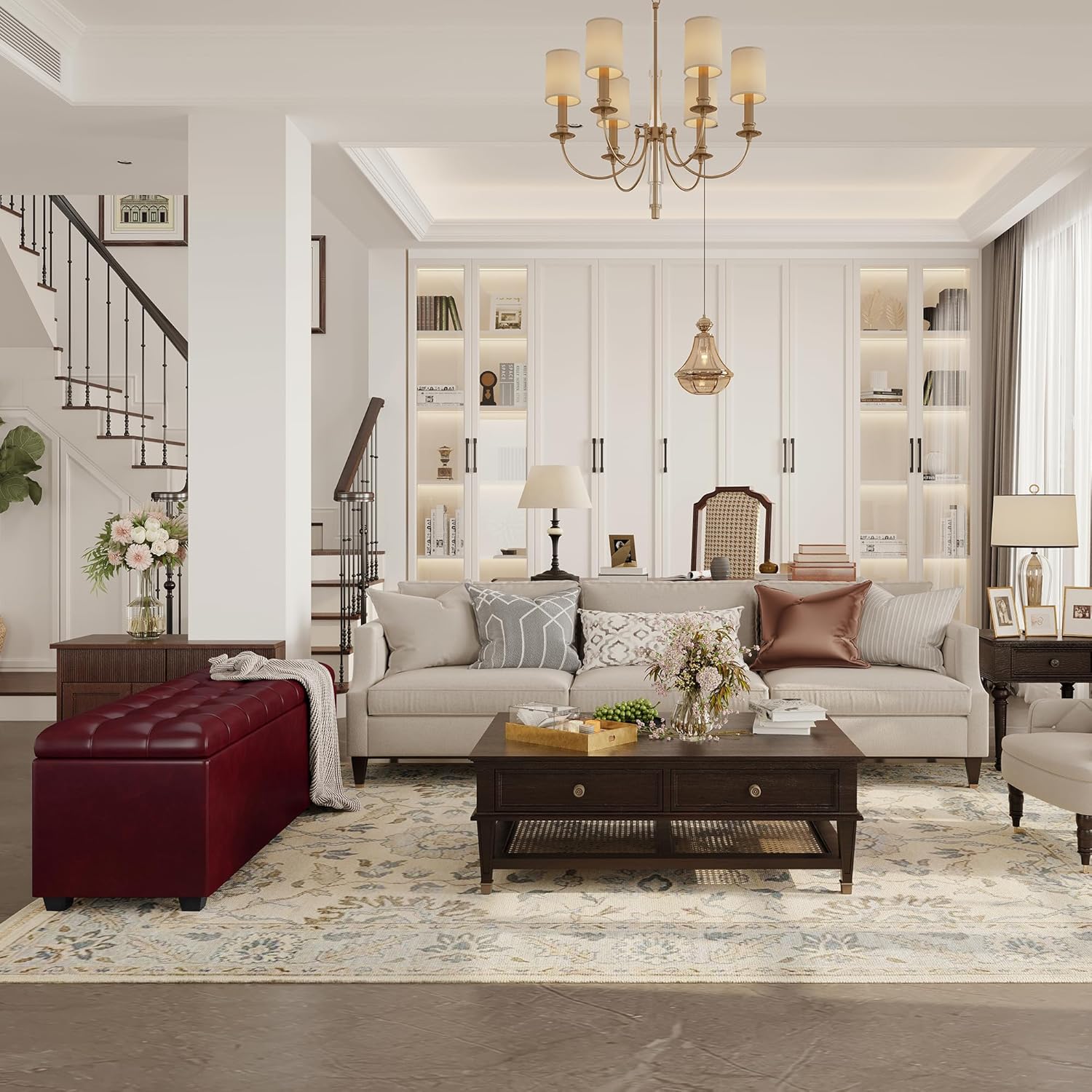 - 【 Easy Assembly & maintenance 】 4 legs assembly required only when it comes to set up this modern bed storage trunk.Leather surface is resistant to dirt and easy to maintain. If it gets dirty, It can be easily wiped clean with a damp cloth