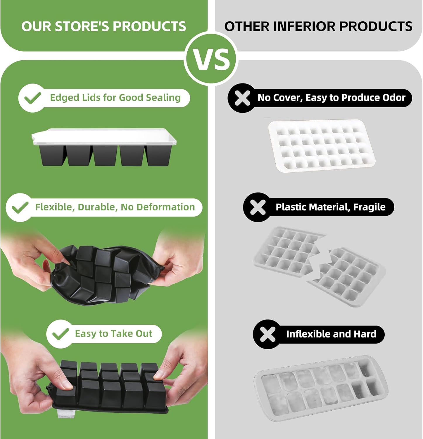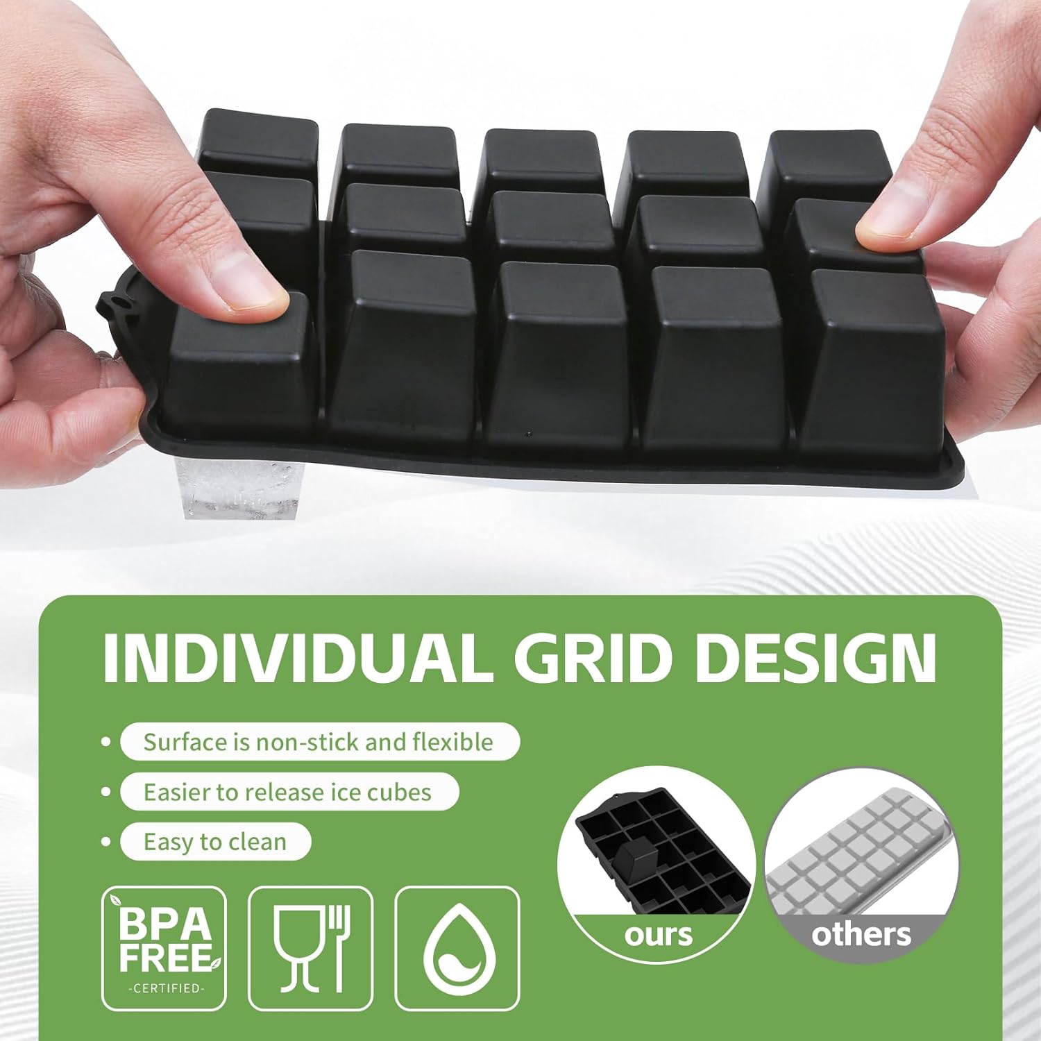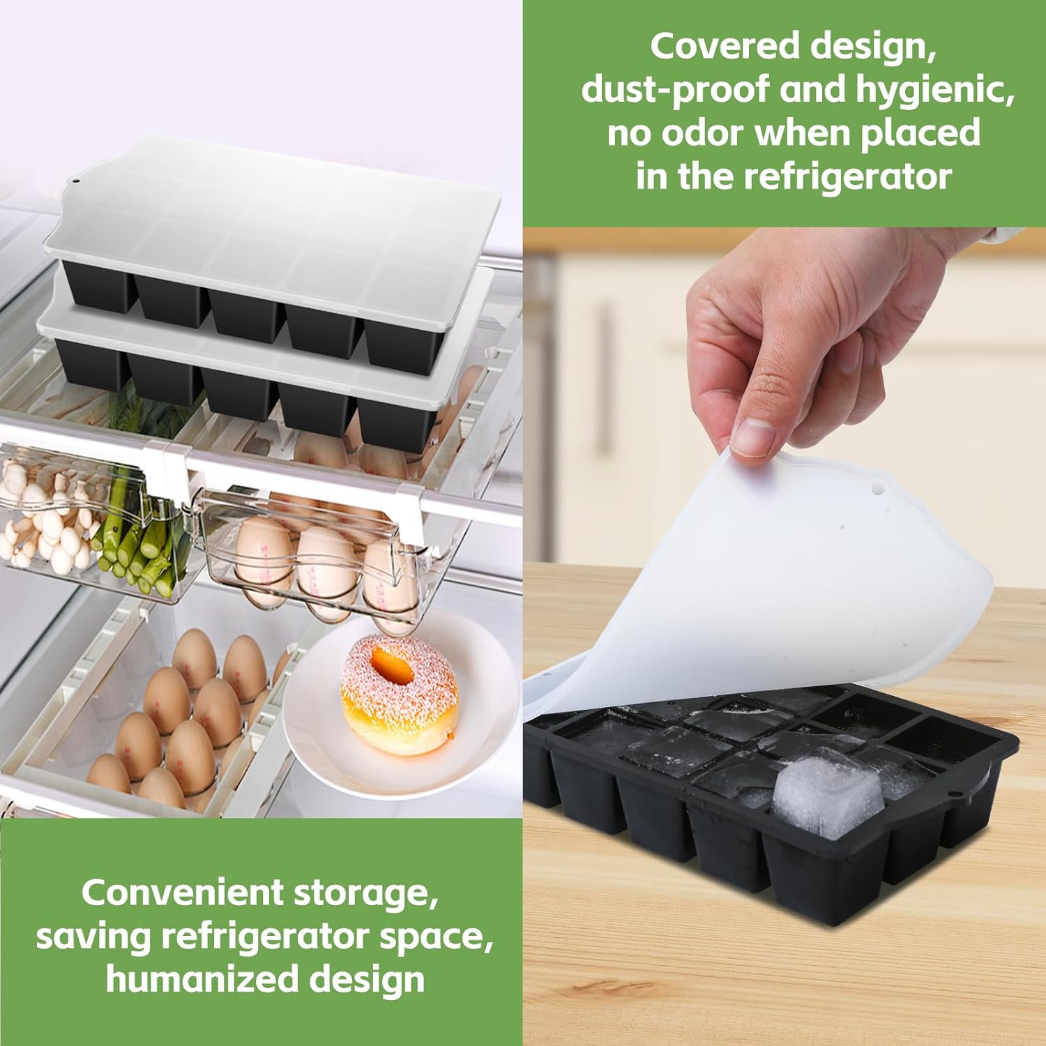 - 【Flexible & Easy-Release Ice Trays 】Our upgraded ice tray with lid features a sleek, non-stick surface for easy release. Just squeeze or push, and ice cubes pop out smoothly.Ice cube trays for freezer with lid are ideal for cocktails, smoothies, or everyday drinks, making your ice-making quick and frustration-free.