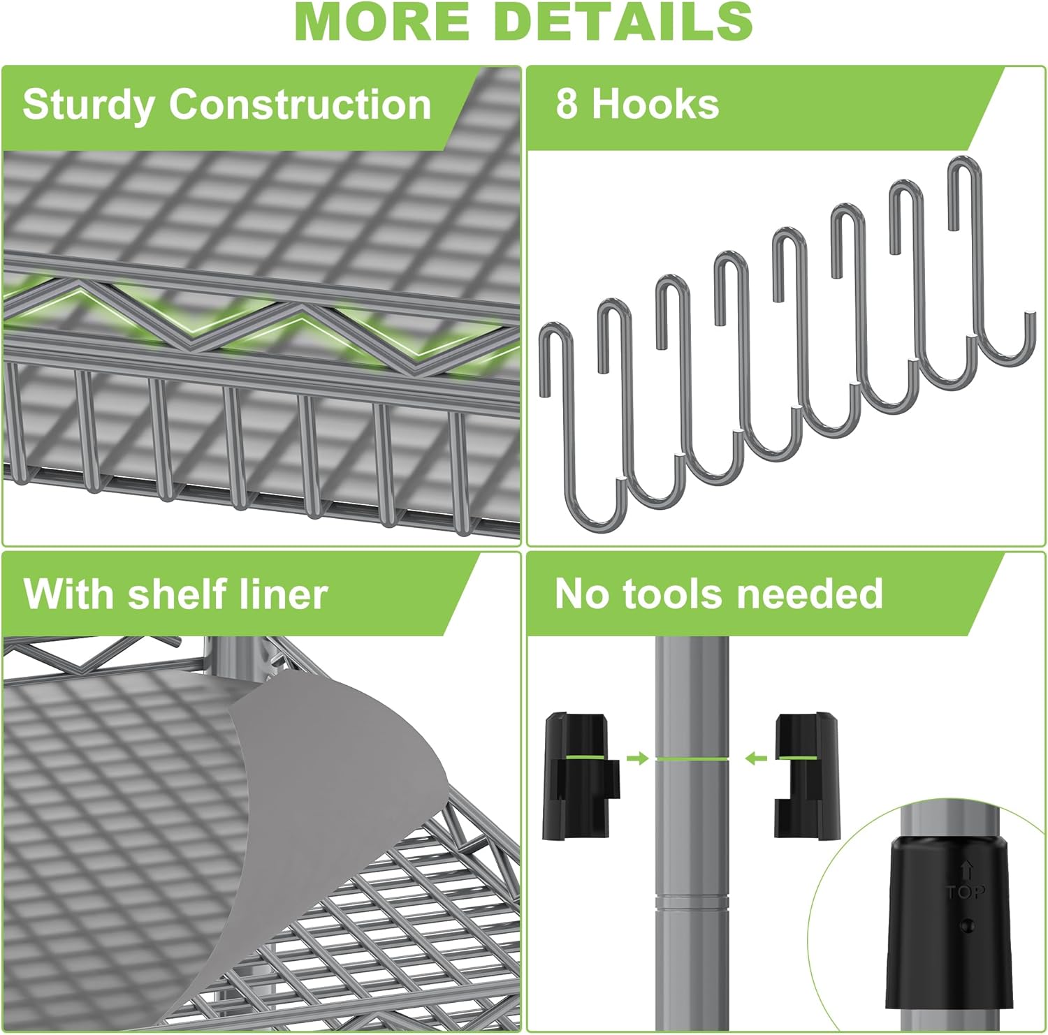 - 【Rust-Proof & Scratch-Resistant】Kitchen Carts on Wheels surface adopts high-quality electroplating coating process, the surface is glossy and bright, scratch-resistant and wear-resistant, which can prevent rust, corrosion or water penetration, and is very suitable for use in kitchens, warehouses, garages, gardens, and offices