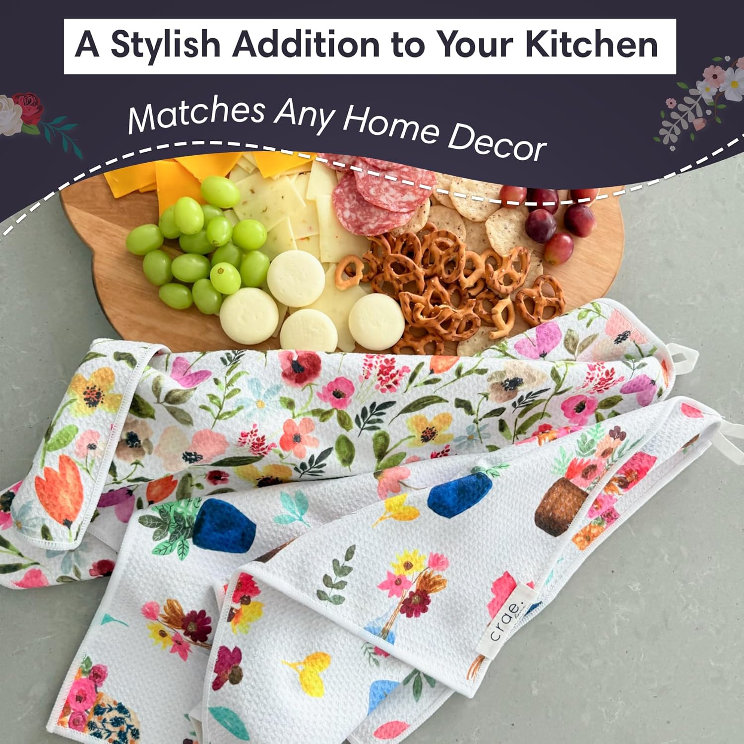 2 Double Sided Microfiber Hand Towels, 17x27 Inches Waffle Design Kitchen Towels Set, Durable & Soft Fast Drying Hand Wash Cloth, Everyday Use Dishcloth at Home (Petal Lane/Posey)