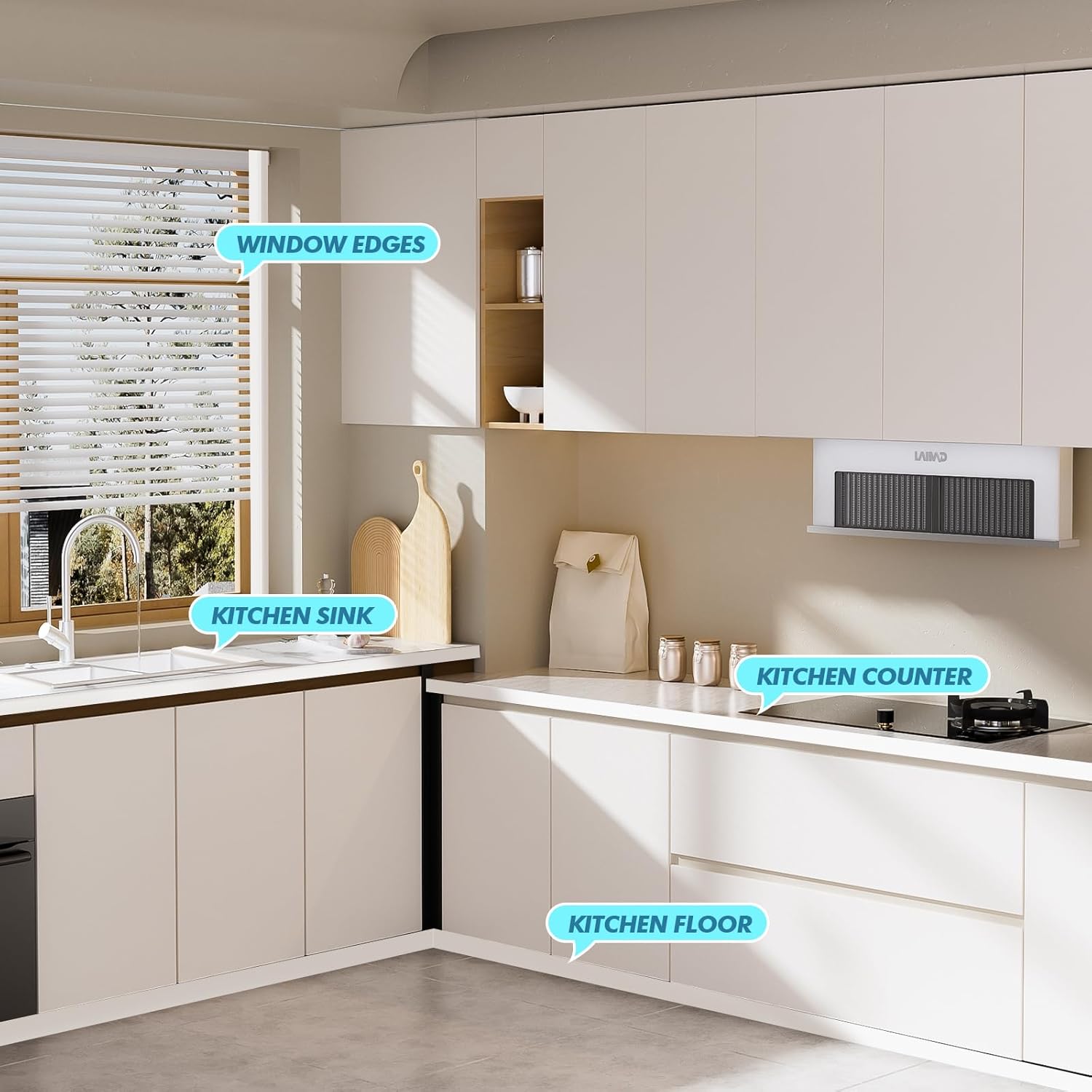 - Wide Applications: this white caulk tape are suitable for tubs, toilets, corners, bathrooms, kitchen countertops, basins, sinks and gas cooktops, keeping your house clean and tidy; The peel and stick caulk strip works on diverse surfaces like tile, glass, and marble for a seamless look
