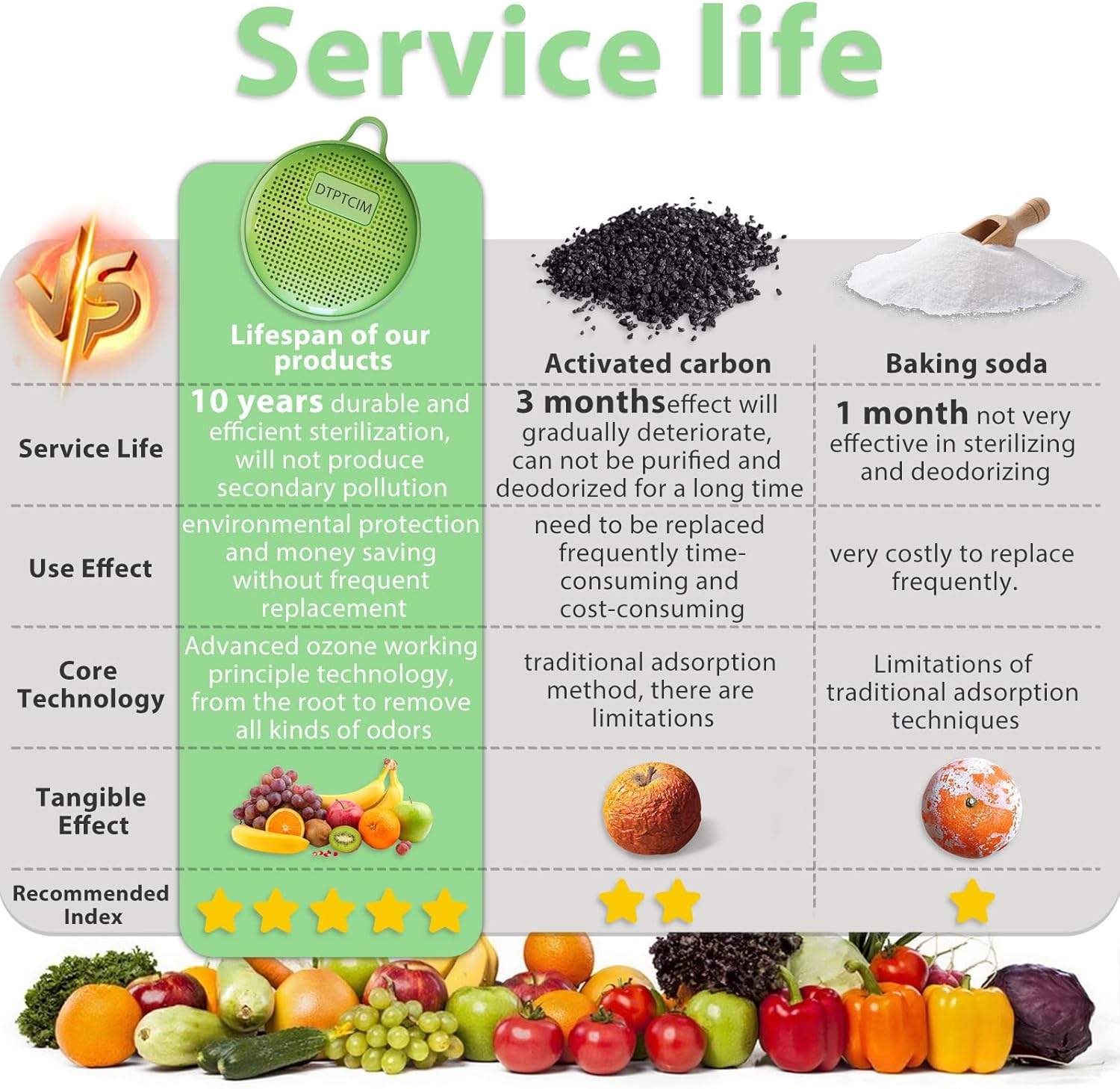 - 1.Refrigerator Deodorizer:Unlike baking soda and bamboo charcoal bags that only absorb odors, our refrigerator deodorizer can quickly and effectively circulate activated oxygen to every corner of the refrigerator. It maintains a fresh, odor-free environment inside the fridge, thereby keeping food fresh for a longer period of time. Free from secondary pollution and chemical ingredients, it eliminates odors at the source rather than masking them