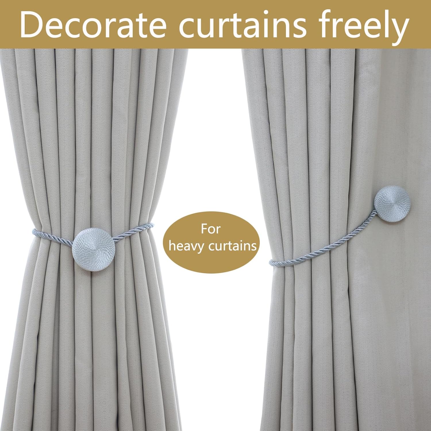 - 🎯 Versatile Styling Anywhere: Versatile for Any Room & Curtain: These magnetic curtain tiebacks perfect for thick blackout drapes or sheer curtains, used fully tied or half-tied. Perfect for living rooms, bedrooms, offices & bathrooms. European braided design blends with farmhouse, modern, or classic decor. Holds thickest curtains yet gentle on fabrics.