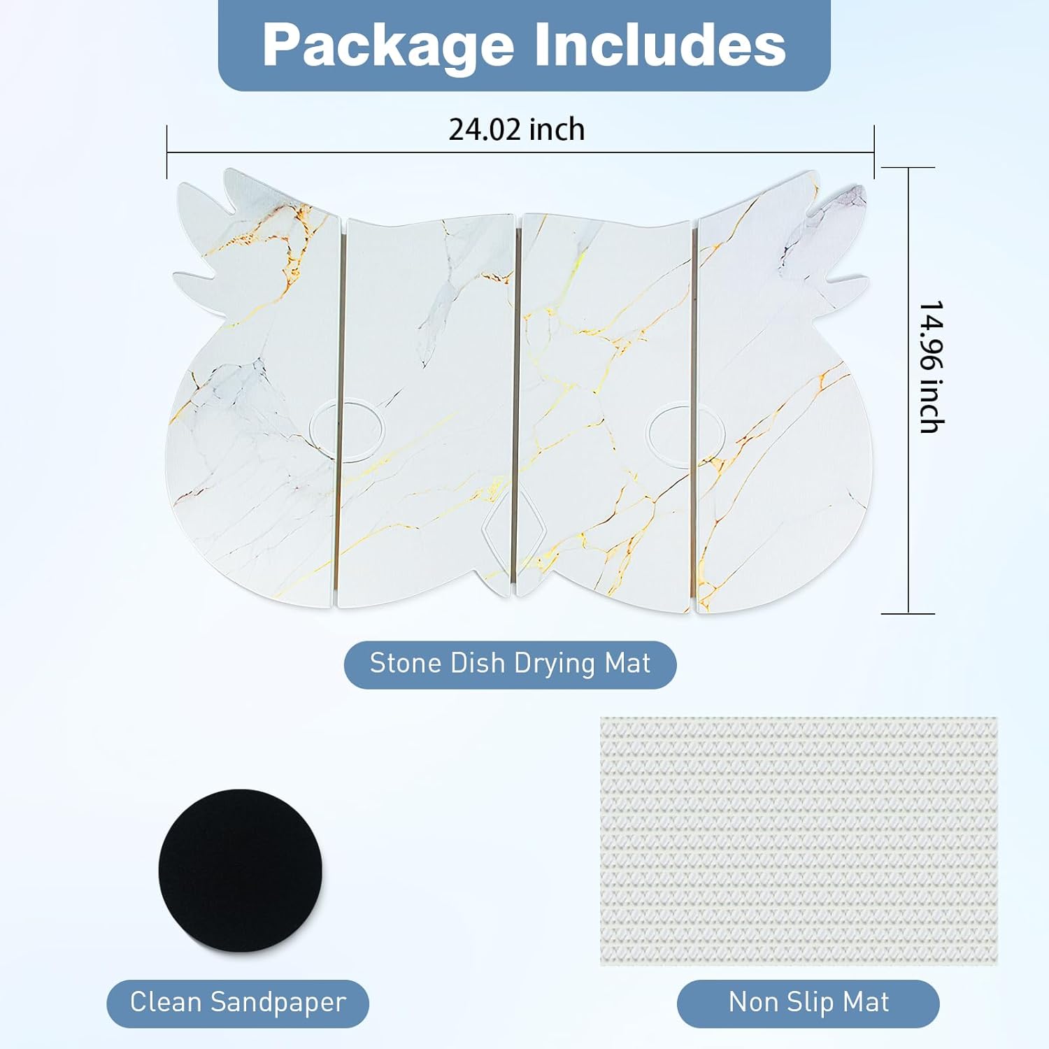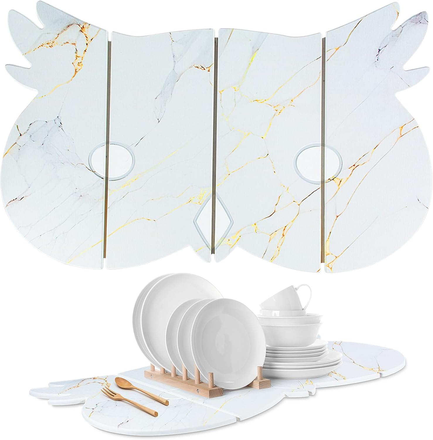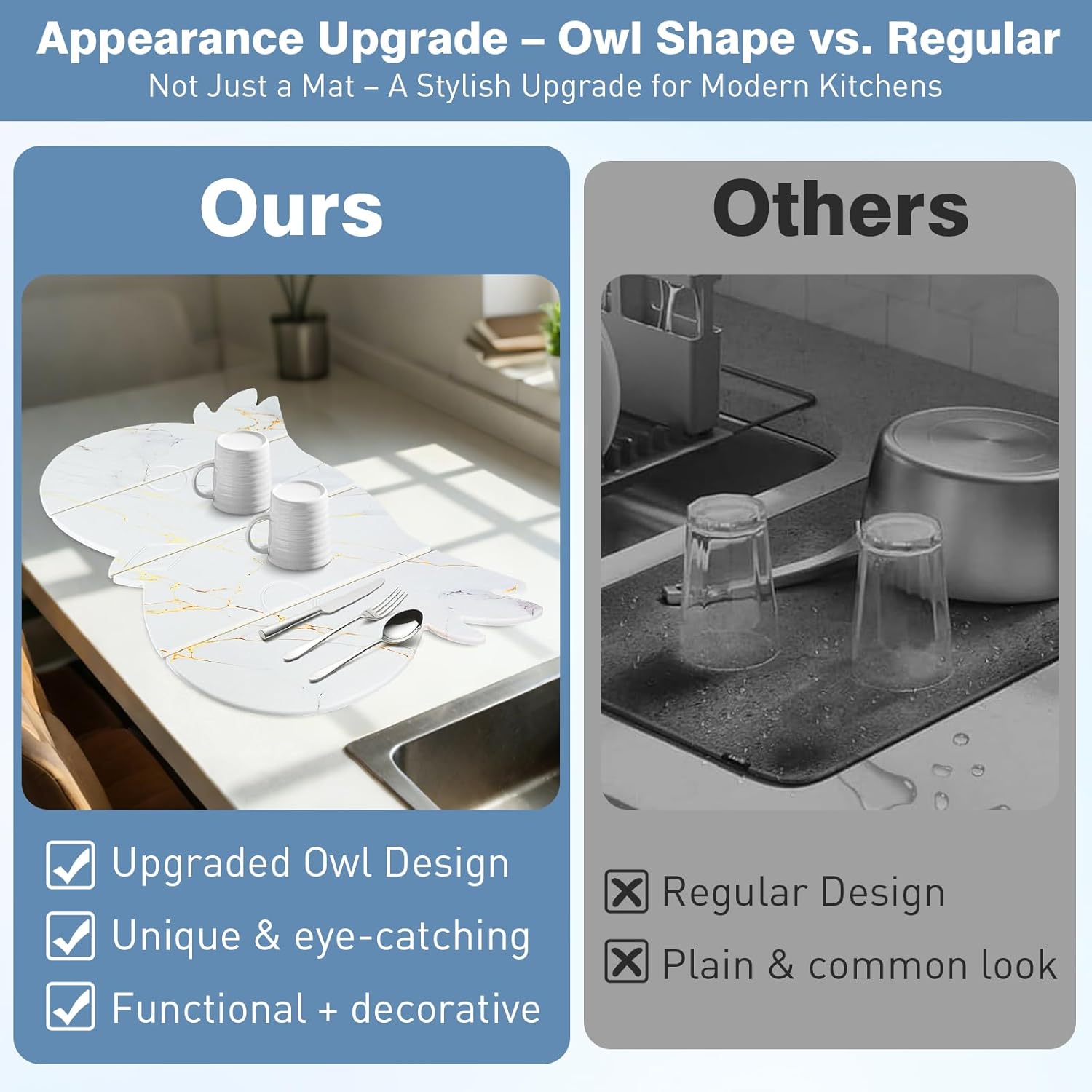 - 【Upgraded Owl Design with Elegant Marble Pattern】Stylish owl-shaped stone dish drying mat with a marble pattern adds a decorative and modern touch. Perfect upgrade for kitchens seeking both functionality and aesthetic appeal