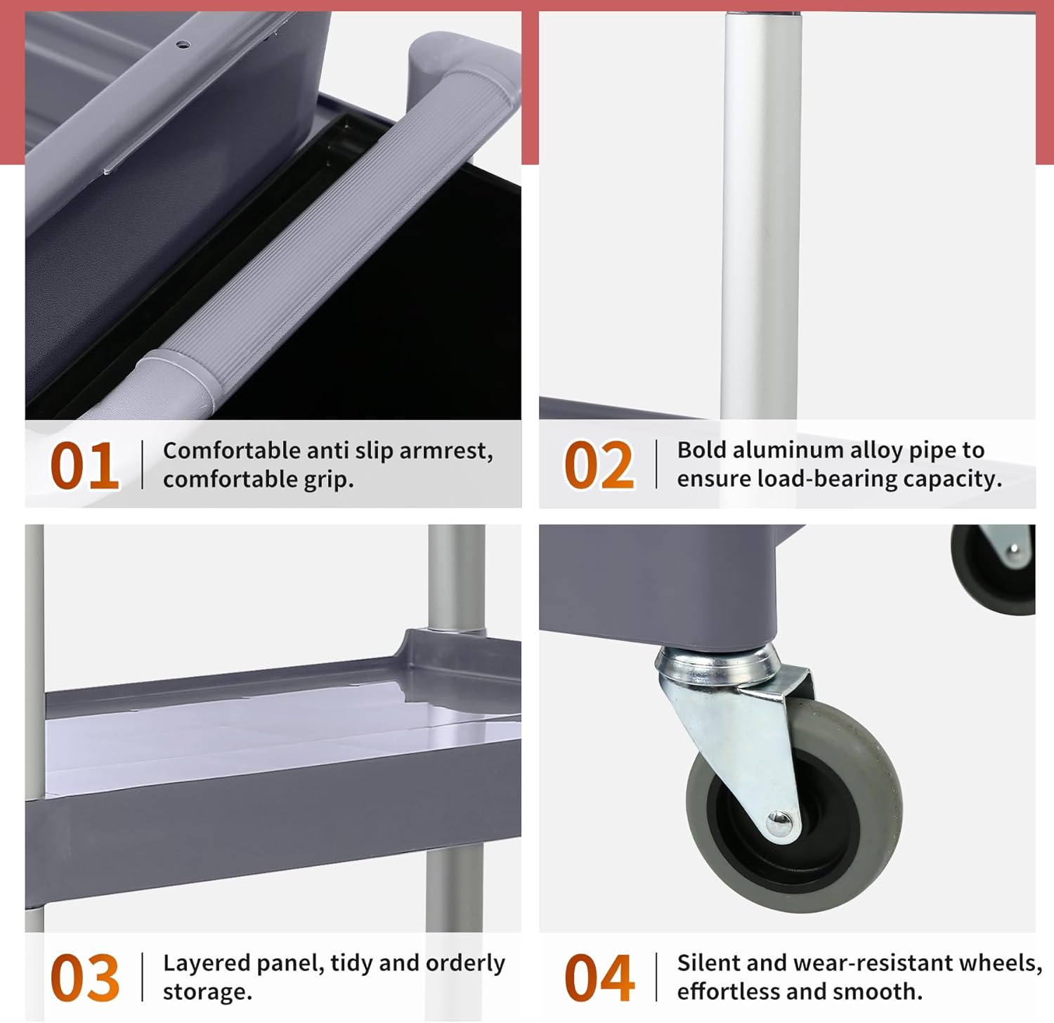 - MOBILITY: Four smooth-rolling caster wheels enable easy maneuverability around corners and through doorways