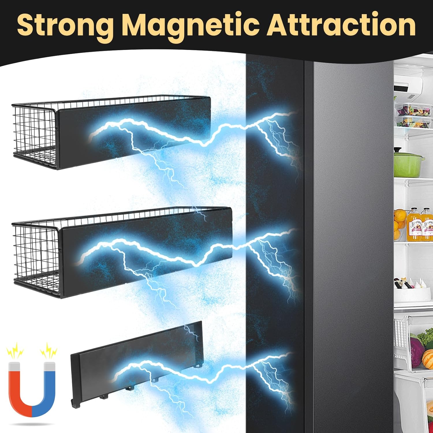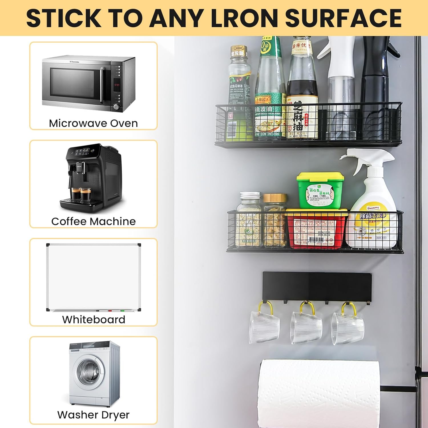 - 【Powerful Magnetic Backing – No Drilling Required】Equipped with strong rubber magnets on the back, the rack attaches firmly to any metal surface such as refrigerators, washing machines, or cabinets. It stays securely in place even when fully loaded, offering hassle-free installation without holes or tools.