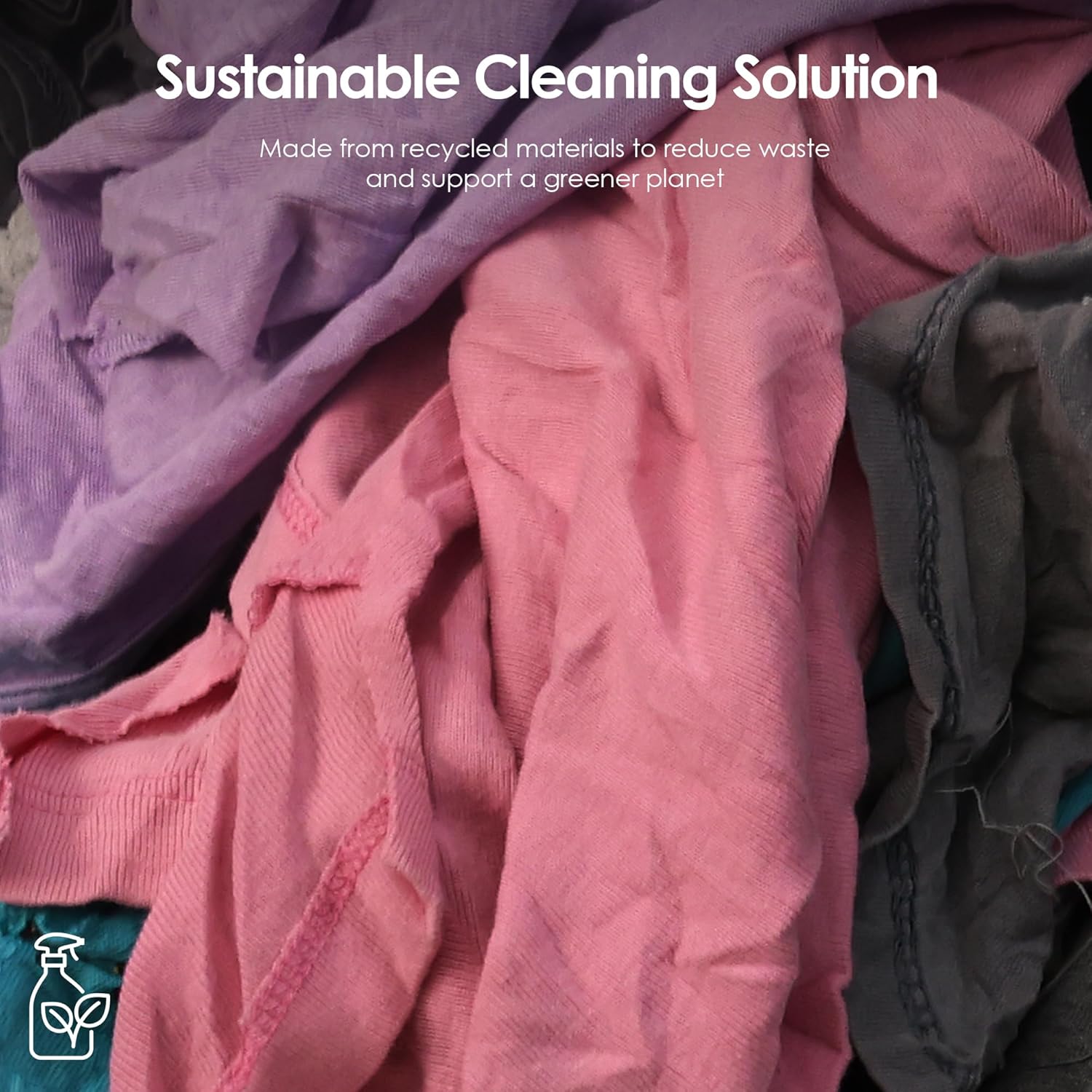 - Reclaimed Colored Knit Fabric – Crafted from recycled t-shirt material, ensuring each rag is soft, absorbent, and easy on surfaces.