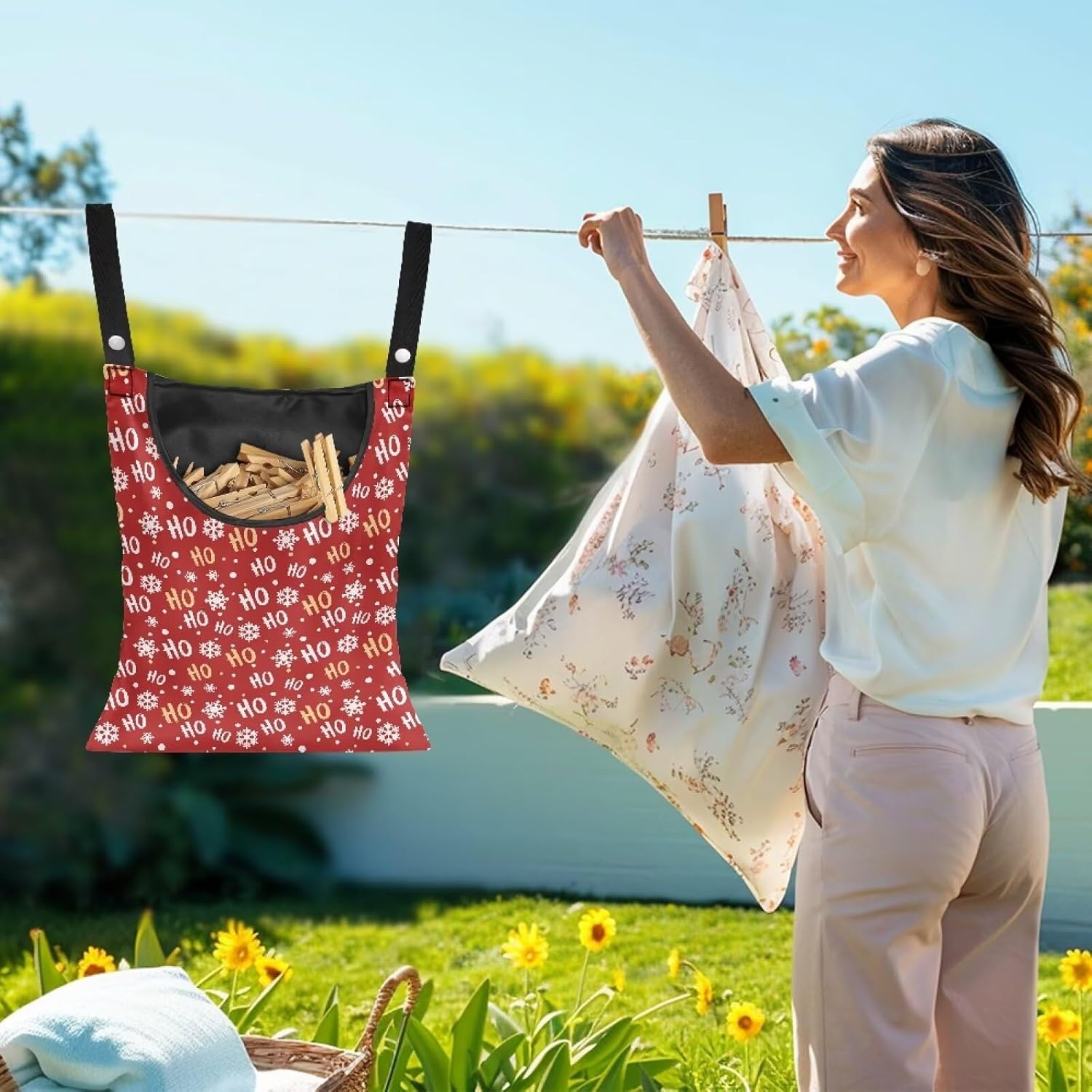 Clothespin Bag with Large Capacity for Mini and Wooden Clothespins with Large Opening Storage Organizer Laundry Hanging Bag - Christmas