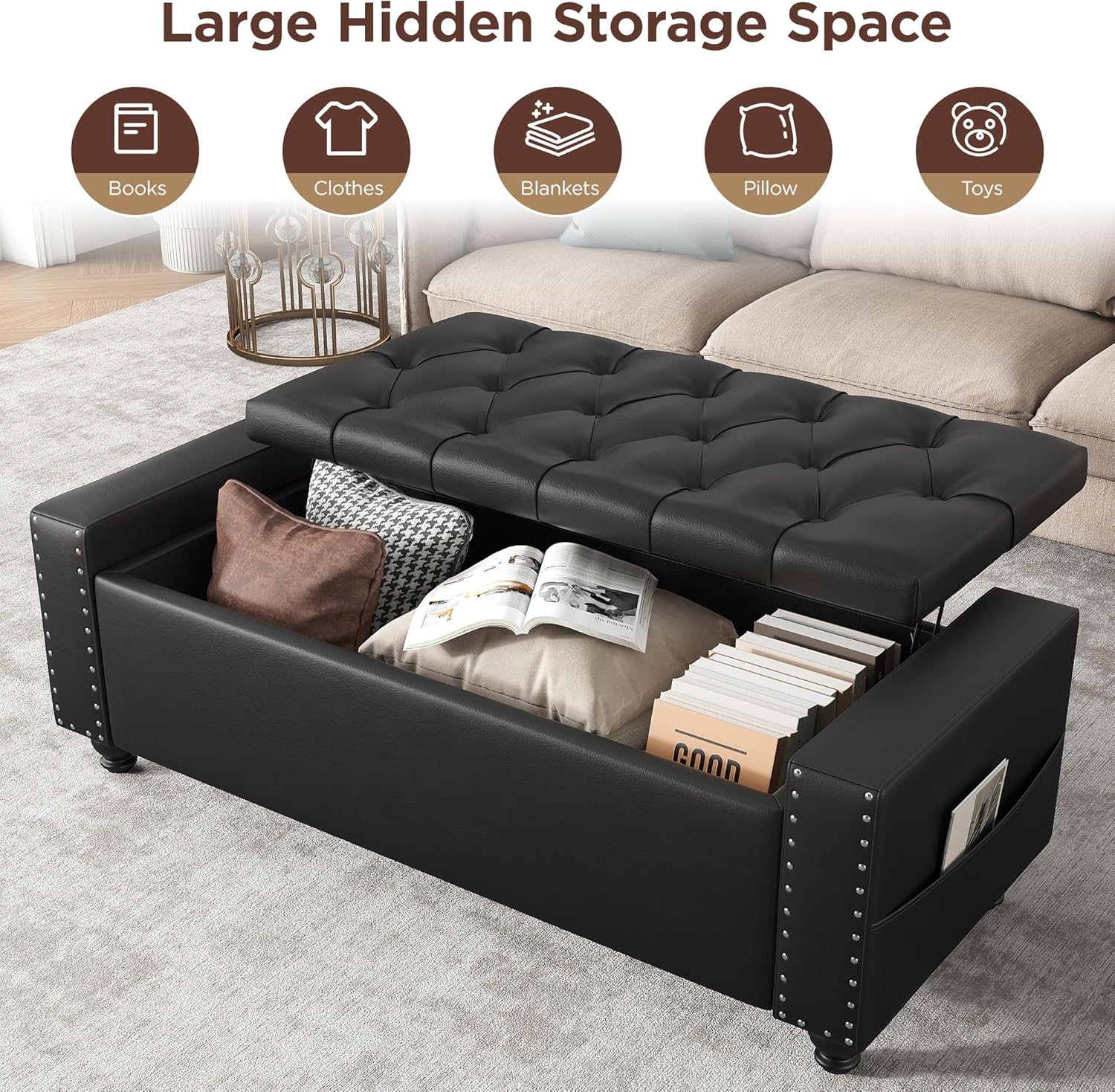 - Comfortable and Elegant Design: The upholstered storage ottoman bench is soft and comfortable, featuring a high-quality faux leather surface that is both durable and easy to clean. The cushion is made of high density sponge with good rebound, ensuring a long-lasting, fatigue-free sitting experience in your bedroom, living room, hallway, or entryway