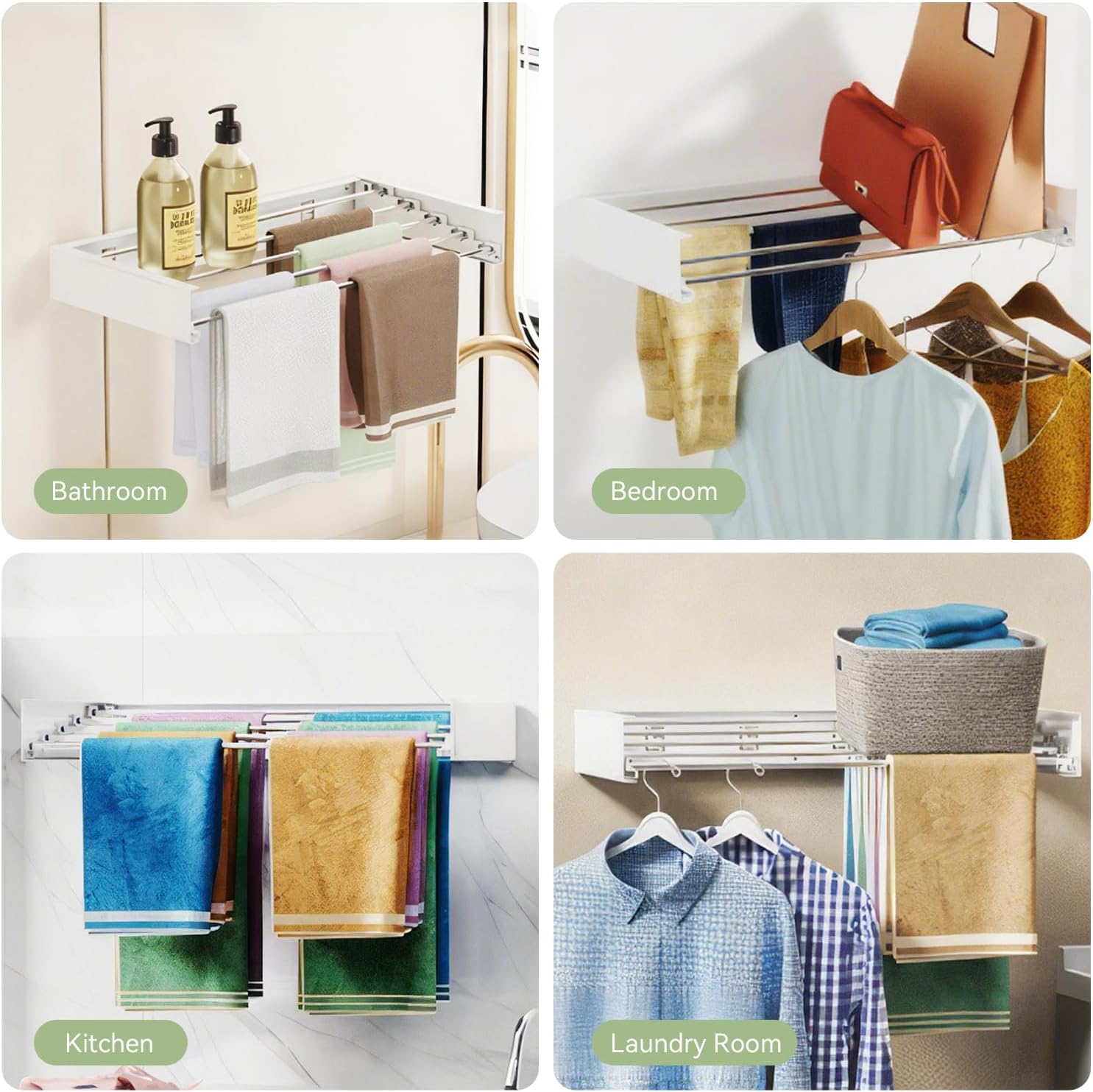 - Recommended Uses For Product : Clothes Hanging, Indoor Drying, Laundry Drying, Space Saving Storage, Towel Hanging