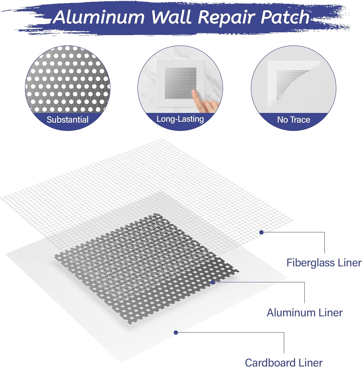 - Complete Wall Patch Repair Kit: Includes 8.5oz white putty*1, 6 inch self-adhesive wall repair patches*2, 4 inch self-adhesive wall repair patches*2, pp scraper*1, metal scraper*1, sandpaper*2, gloves*1, no need to buy other tools, ready to use right out of the box