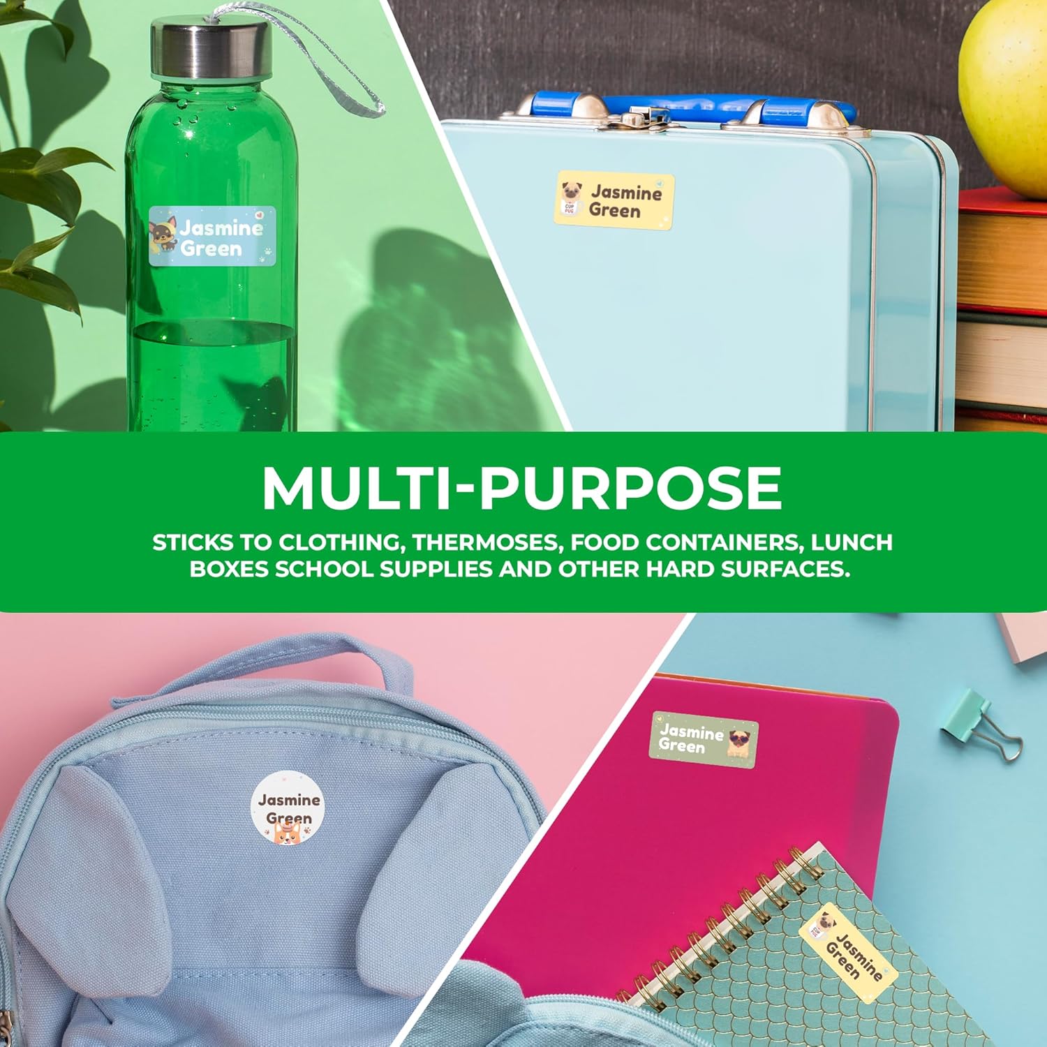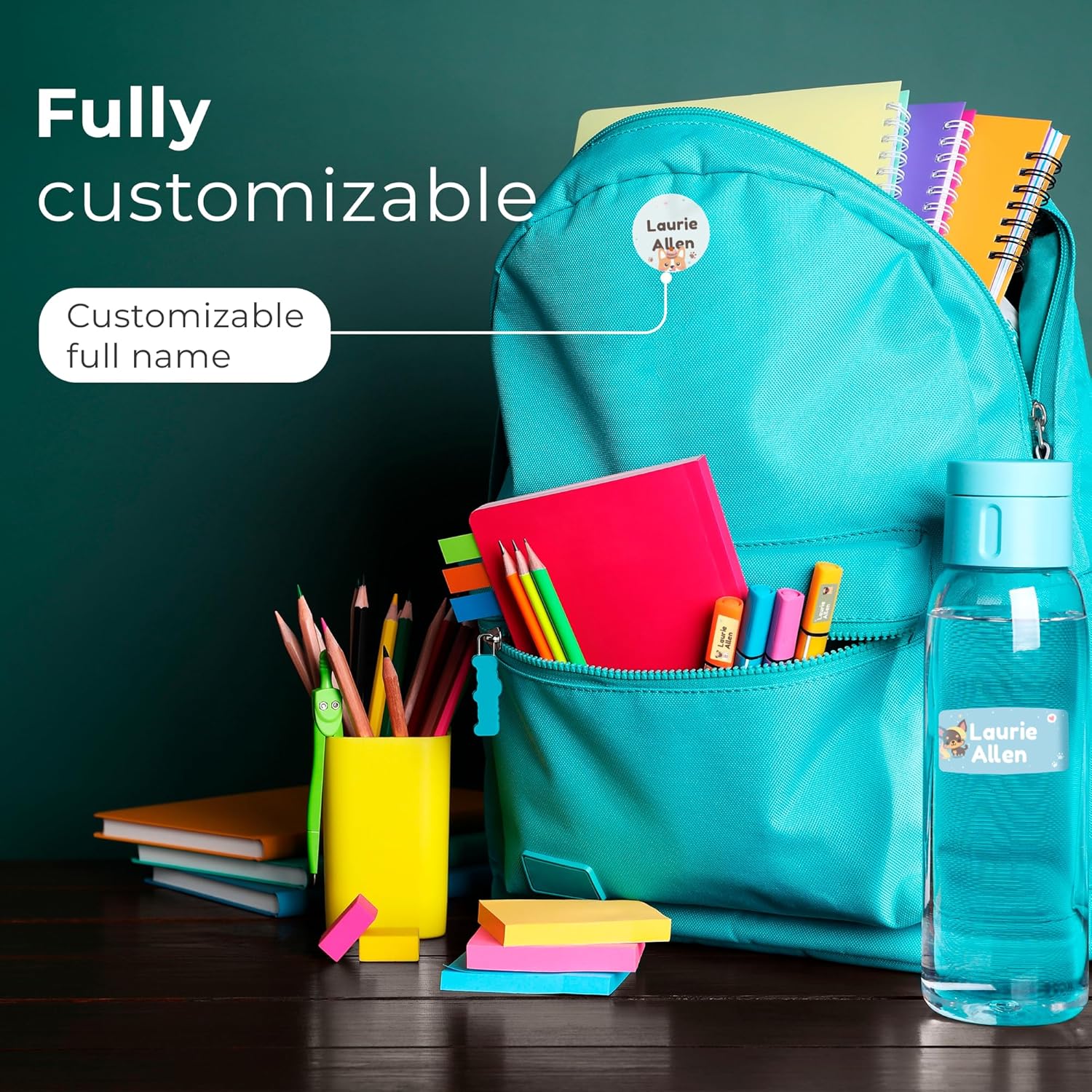 - 💧 Waterproof Stickers & Fade-Resistant — Laminated for long-lasting use, our custom stickers personalized won’t peel, fade, or rub off. Keep your kid’s name visible no matter where the day takes them. These waterproof vinyl labels stick to bottles, lunch boxes, clothing, notebooks, and more. Designed to survive dishwashers, microwaves, freezers, and even washer/dryers!