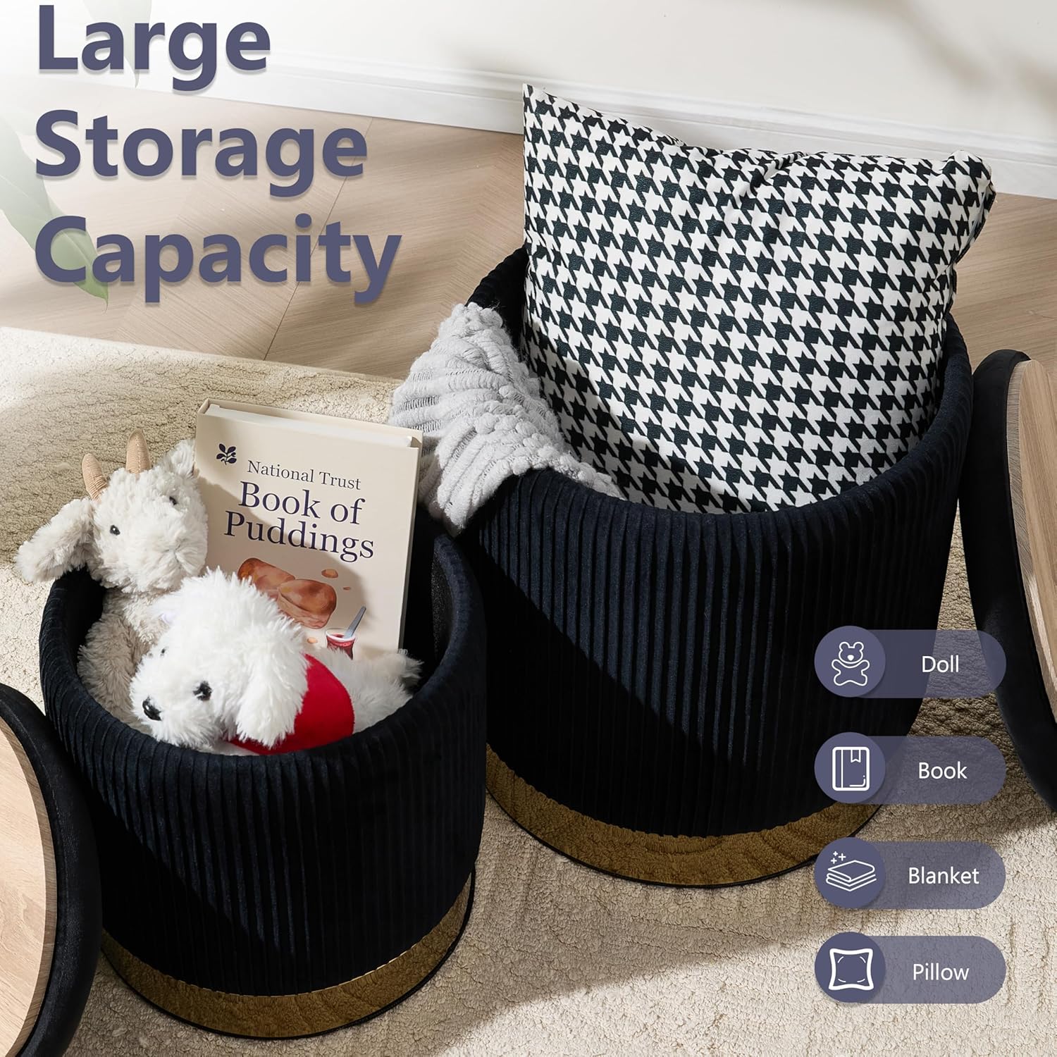 - 【Ample & Versatile Storage Capacity】Enjoy generous storage space in both the large and small ottomans. Ideal for stowing away shoes, blankets, toys, magazines, or accessories. Their versatile functionality allows them to serve as a footrest, extra seating, a vanity stool, or even as a side table with the reversible tops.