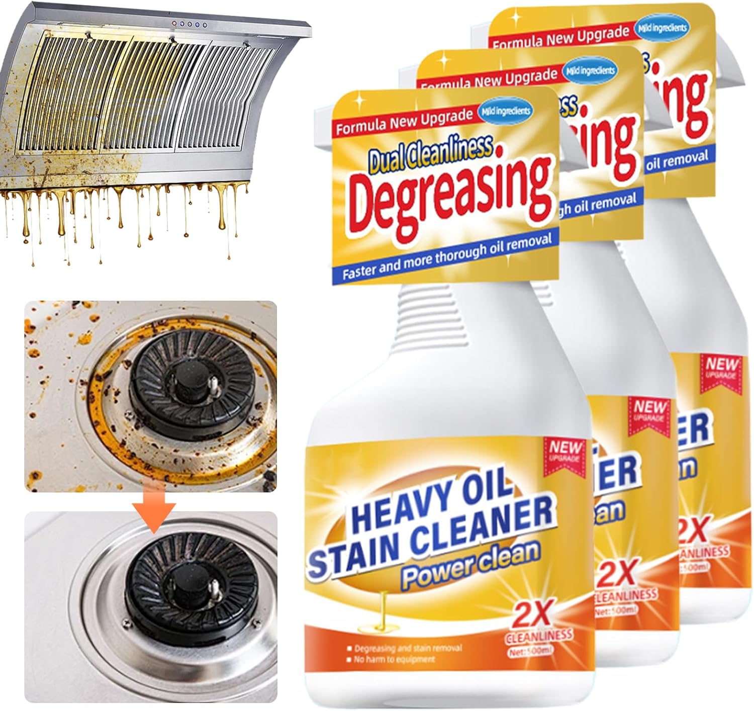 - 💦【Powerful Heavy Oil Stain Removal】This Kitchen Heavy Oil Cleaner easily tackles tough oil stains and grease on kitchen range hoods, stovetops, and dining tables. No heavy scrubbing needed—it quickly breaks down sticky oil, restores surfaces to a clean, shiny state, and reduces cleaning time.