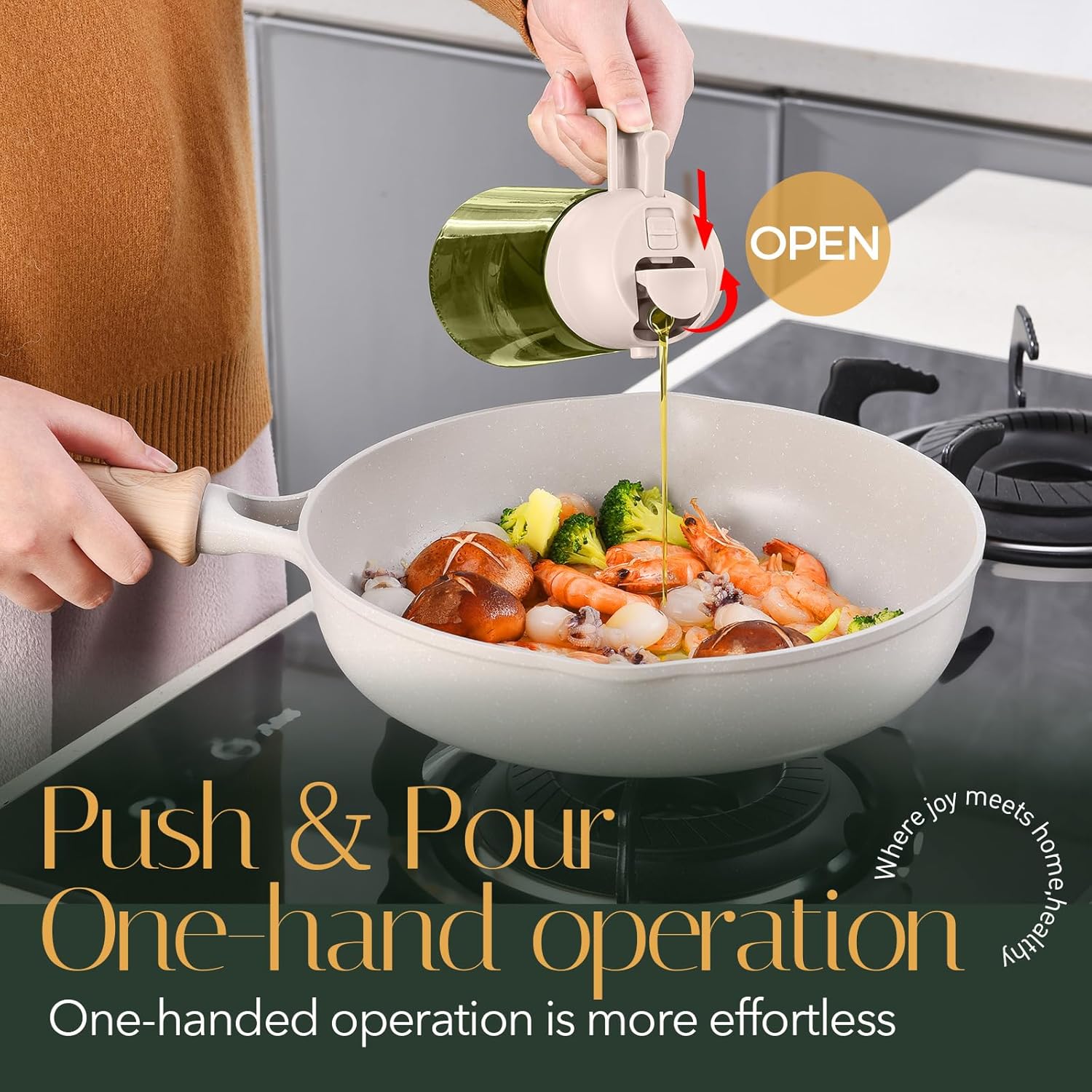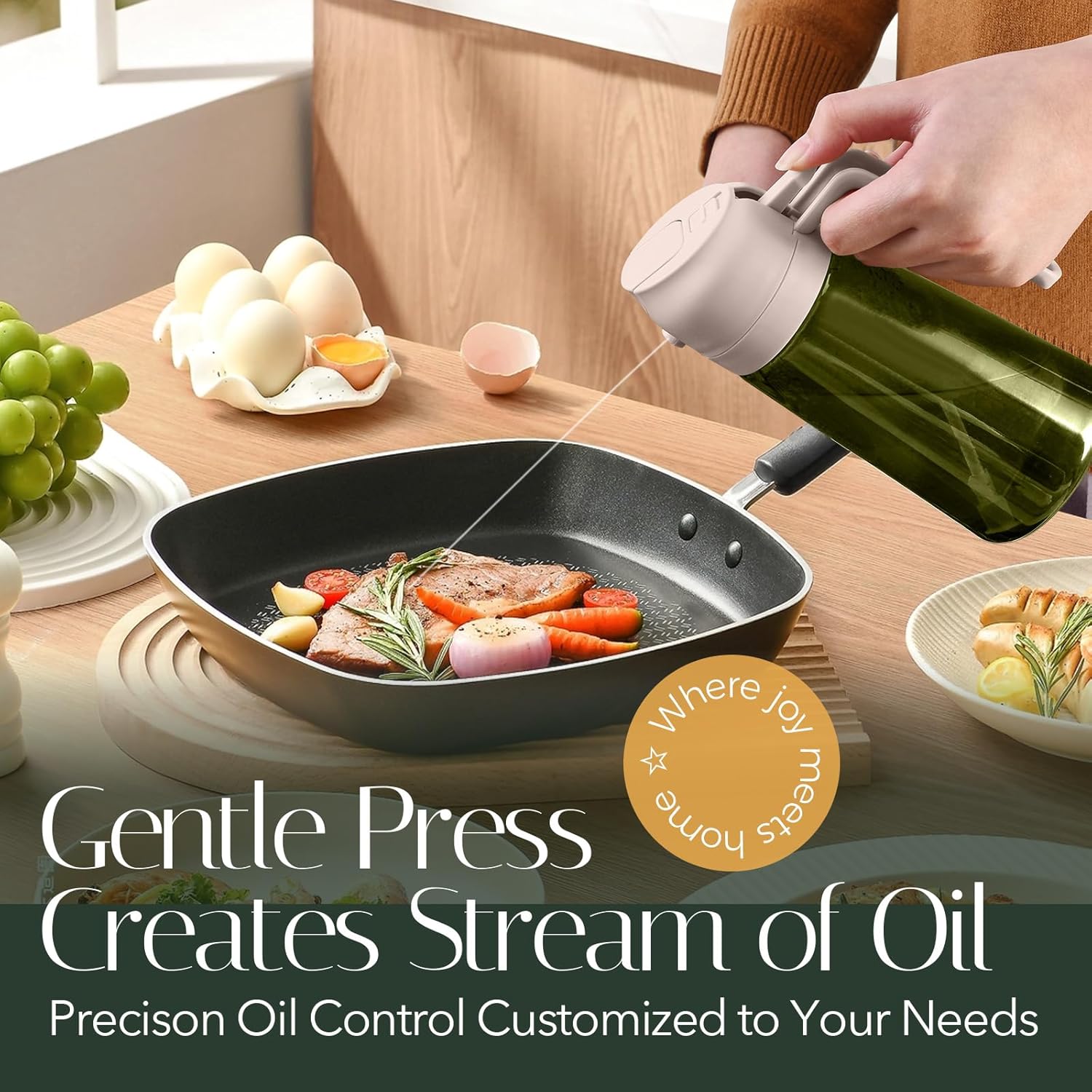 - 【Precise Oil Control】: 2 in 1 oil dispenser and oil sprayer can help to control the amount of oil while pouring or spraying. Each spray dispenses approximately 0.2 grams of oil, which is easily to control and measure your daily oil intake