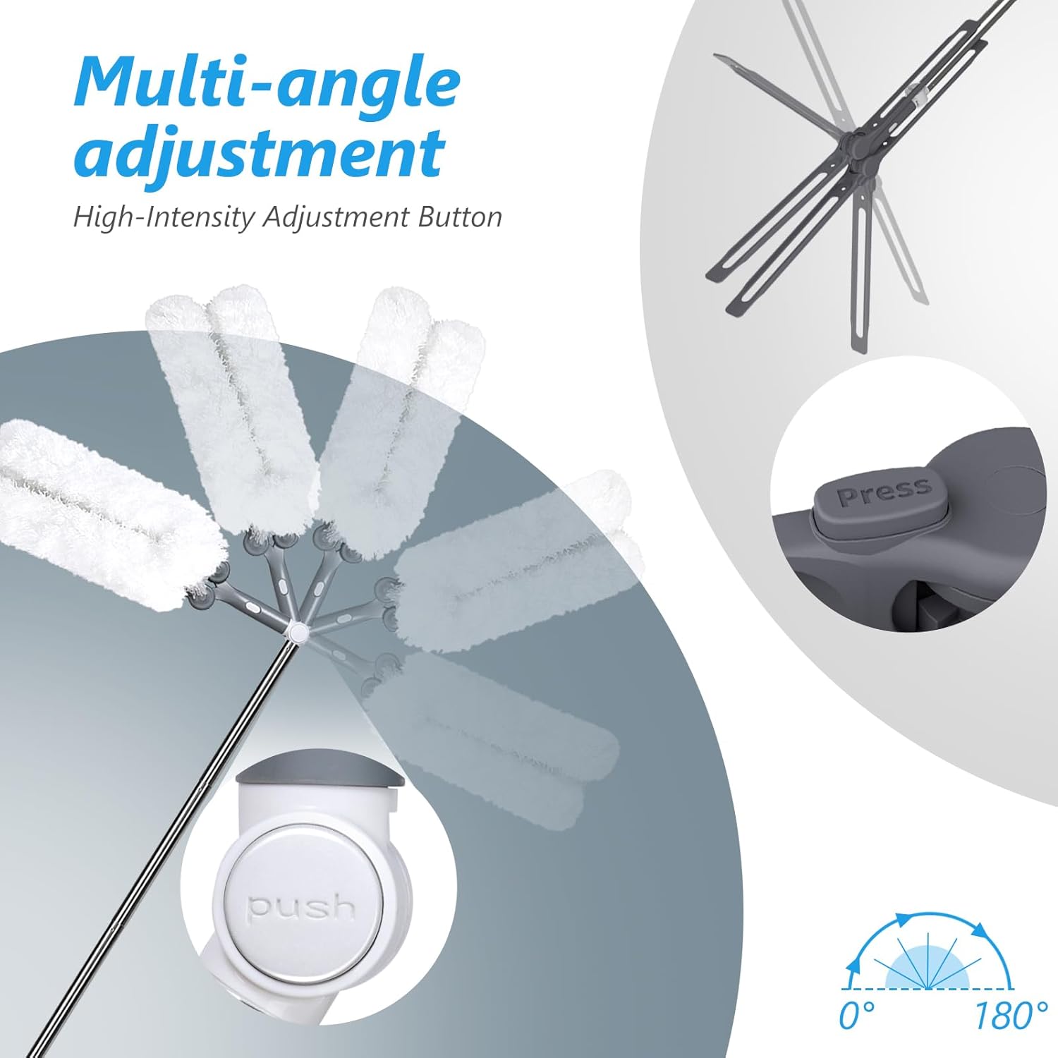 - Multi-Angle Adjustment: The dusting tool head can be adjusted to 5 positions for convenient cleaning of dust on various surfaces. The dual-head feather duster design offers a larger contact area and can be adjusted to different angles via a button, adapting to diverse cleaning needs for true versatility.
