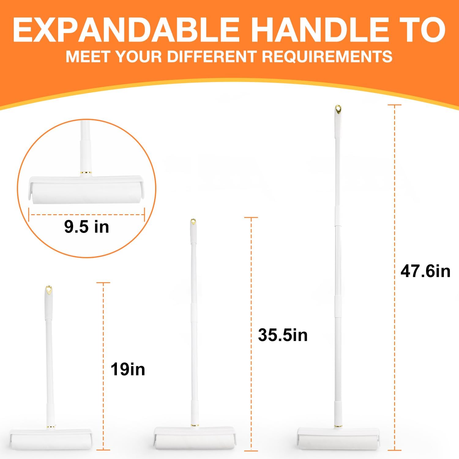 - 4-POSITION ADJUSTABLE HANDLE (7.9" TO 47.6"):Achieve comfortable cleaning with the telescopic handle featuring 4 settings: 7.9" (compact storage/counters), 19" (furniture), 35.5" (standard floor), or 47.6" (high reach). This versatility suits users of all heights or mobility levels, reducing bending or straining. Effortlessly access ceilings, under beds, sofas, and behind appliances. Ideal for individuals with back considerations or tall users.