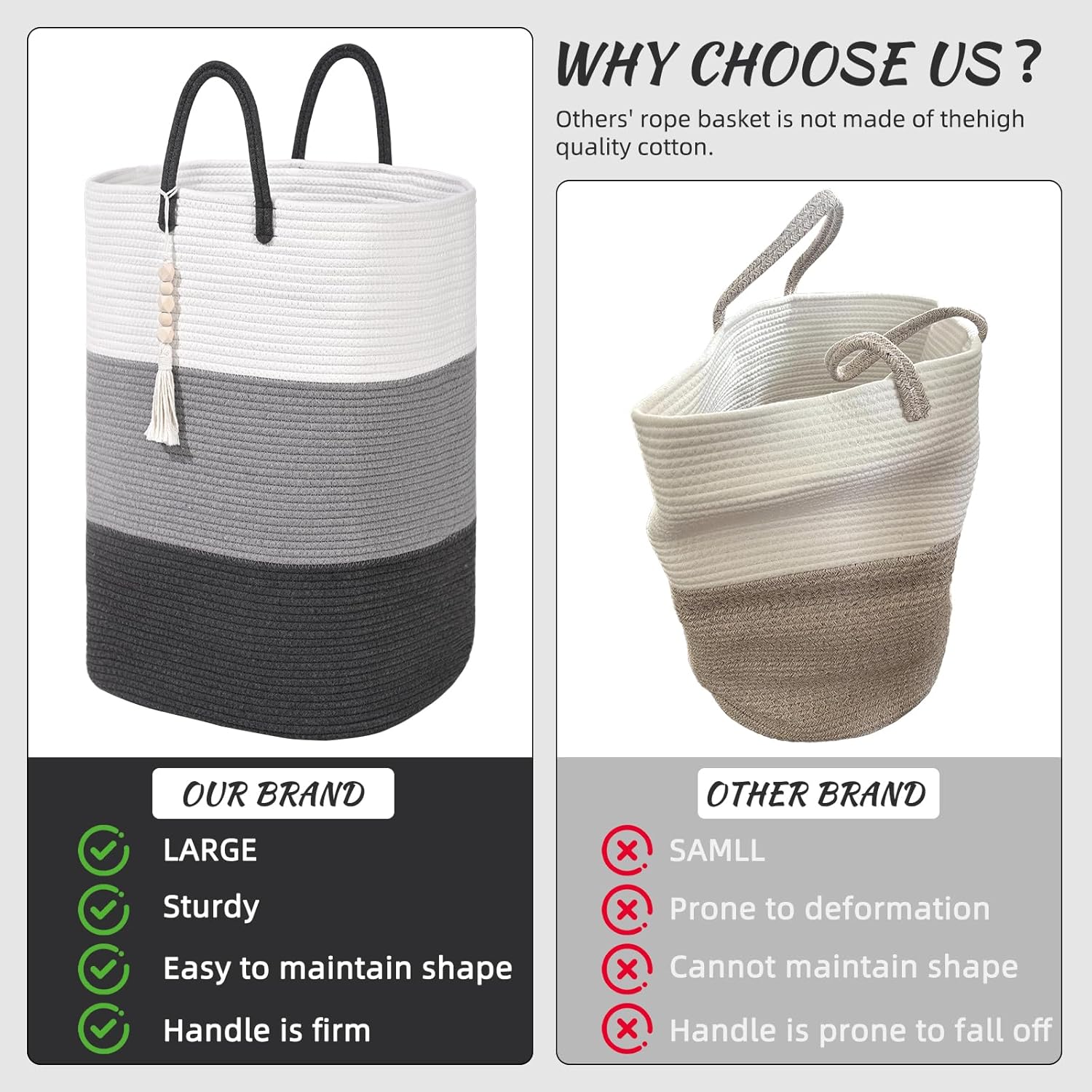 - 🌈[DURABLE, BREATHABLE & SKIN - FRIENDLY COTTON]: Made of sturdy and odor-free rope cotton, woven laundry basket has a solid addition to any space. Tall laundry basket quite sturdy and spacious, capable of holding a good amount without losing its shape, which adds to its practicality.