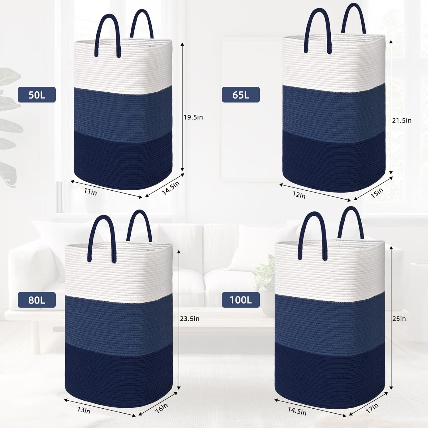 - 🌻[SPACIOUS STORAGE & FOLDABLE BASKET]: Laundry basket with 50 L, 65 L, 80 L, 100 L capacities that effortlessly accommodates your different laundry needs, allowing you to store your clothes conveniently. Tall storage basket also foldable, making it easy to store away when not in use.