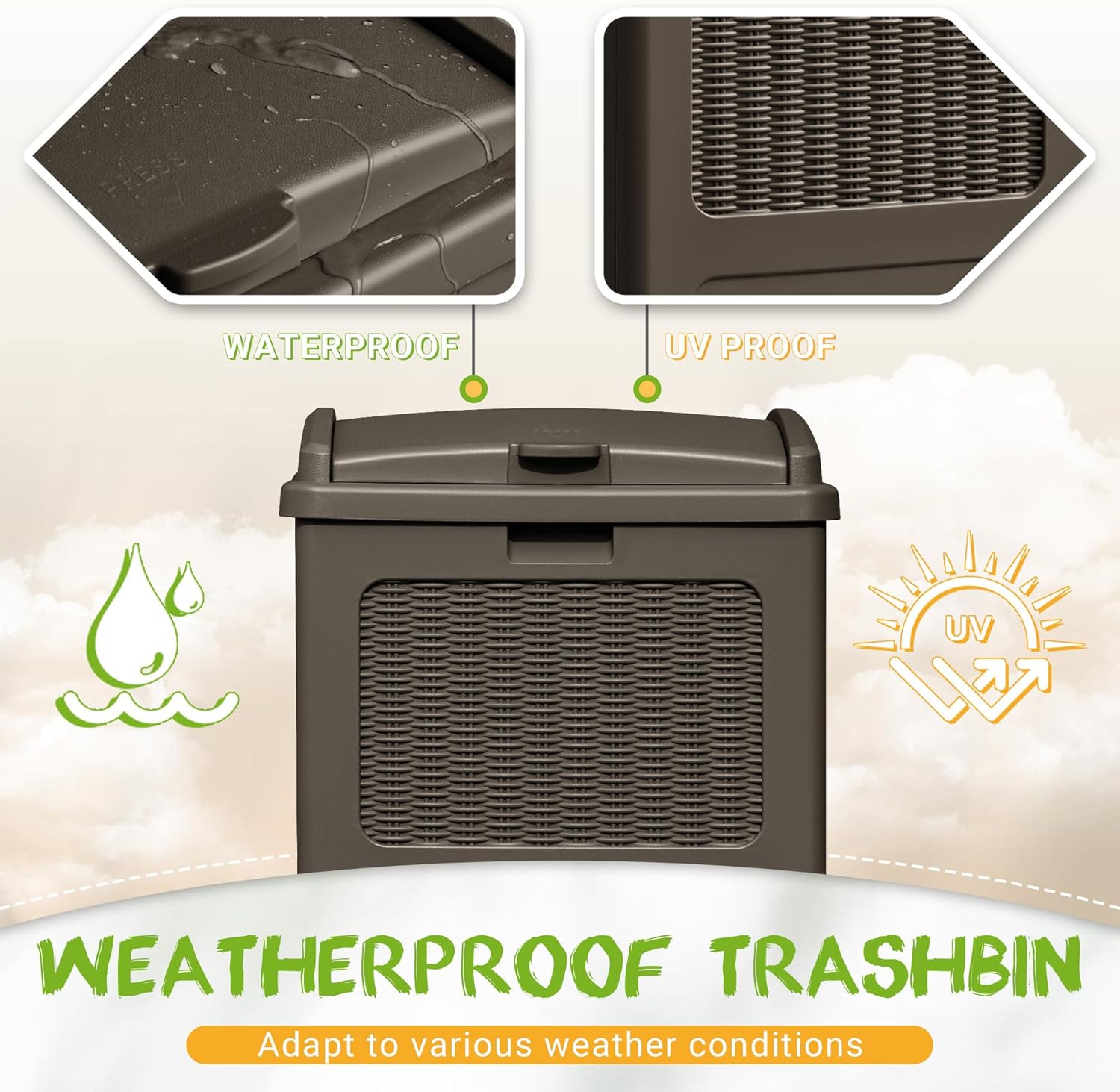 YESHOMY 4 Pack Outdoor Trash Can with Lid, Garbage Bins for Garden, Porch, Home and Kitchen, Brown
