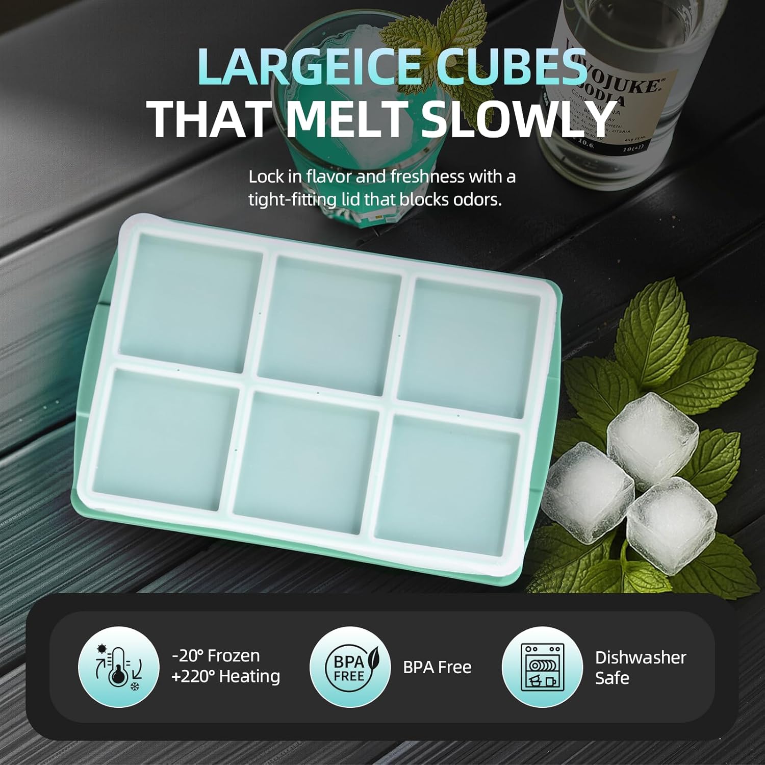 - 【Spill-Proof Confidence】Our crystal-clear silicone lid delivers superior sealing, locking each chamber individually. This ilicone ice cube tray prevents leaks and cross-mess during transport or tilting, while remaining easy to open and securely snap on.