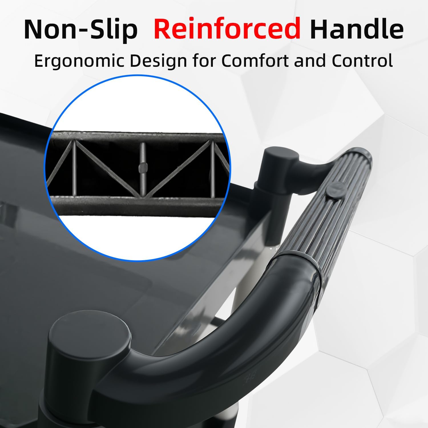 - Ergonomic & Safe Handle: Tow Side handles are ergonomically shaped for comfortable grip height and angle. Rounded corners prevent nicks on walls or furniture.The 0.8" plastic rim on the tray back and sides keeps items secure.