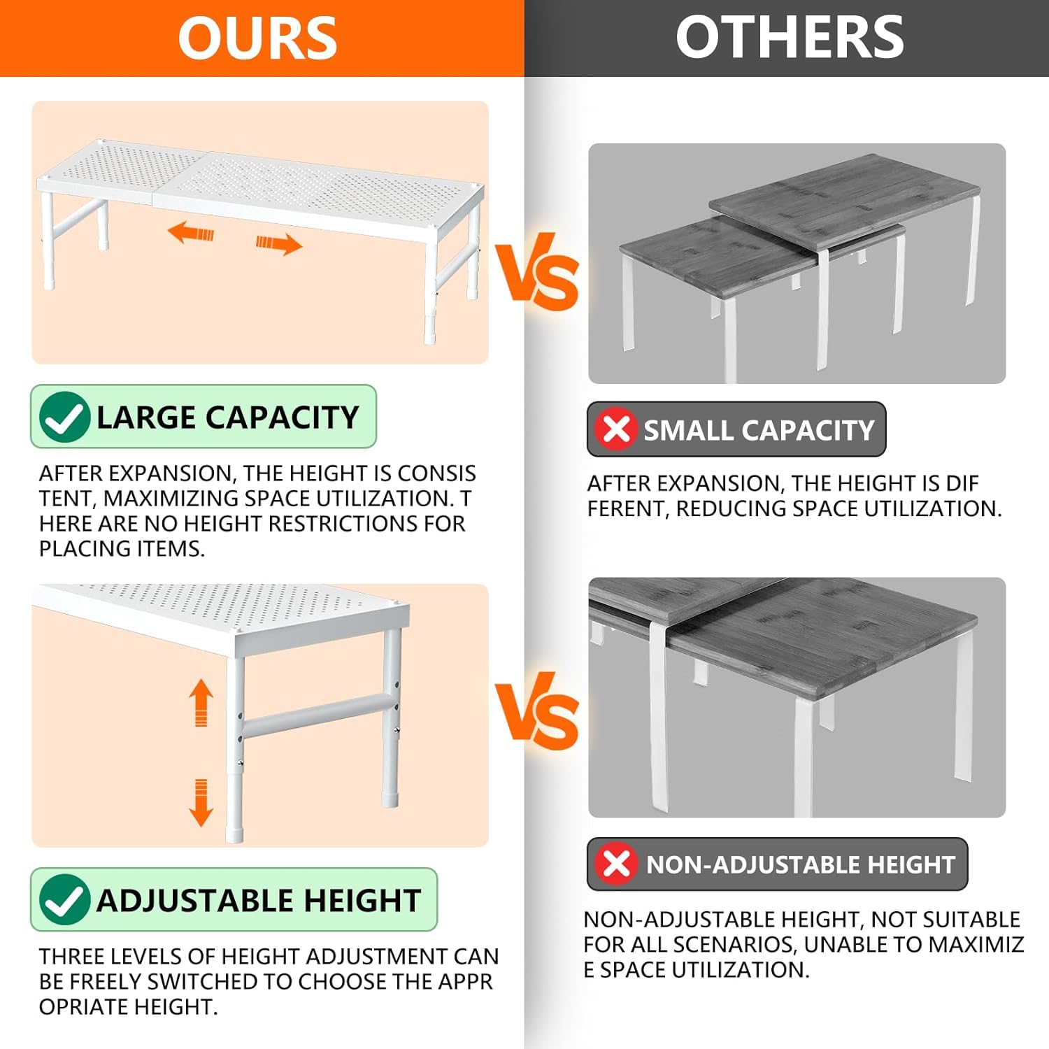 - Expandable & Stackable Cabinet Organizer:Designed as a top-tier kitchen organizers and storage solution, this product includes an adjustable pantry shelves system that allows for customization to hold various items securely, coupled with an expandable cabinet shelf that adapts to your needs, serving as an excellent spice rack organizer for cabinet and improving overall cupboard shelf organize capabilities for a tidy kitchen.