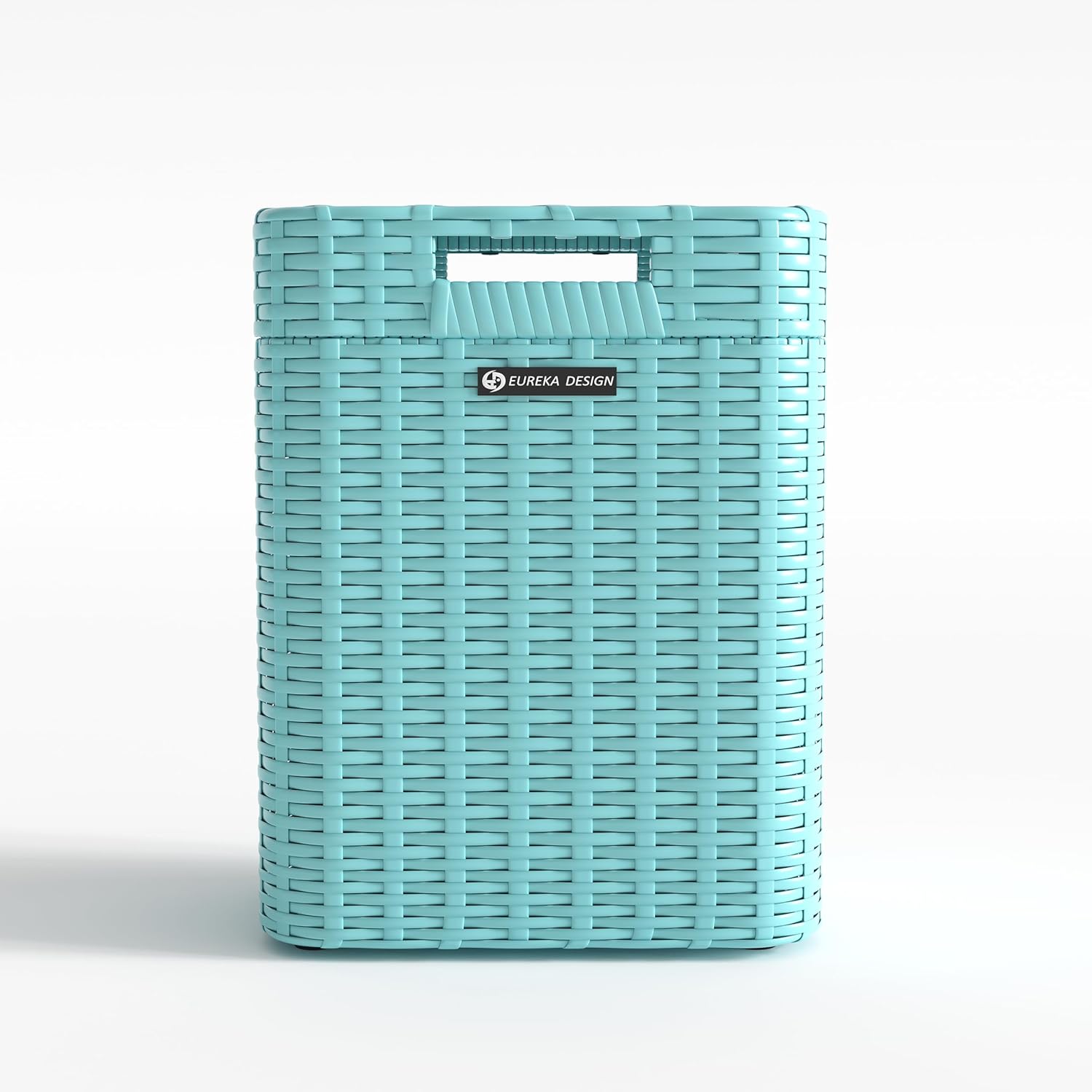 Ypati Handwoven 4 Gallon Rattan Trash Can with Lid, Boho Style Decorative Indoor and Outdoor Trash Bin with Shelf, Waste Basket for Bathroom, Kitchen, Patio, with Trash Bags, Turquoise Blue, Eureka