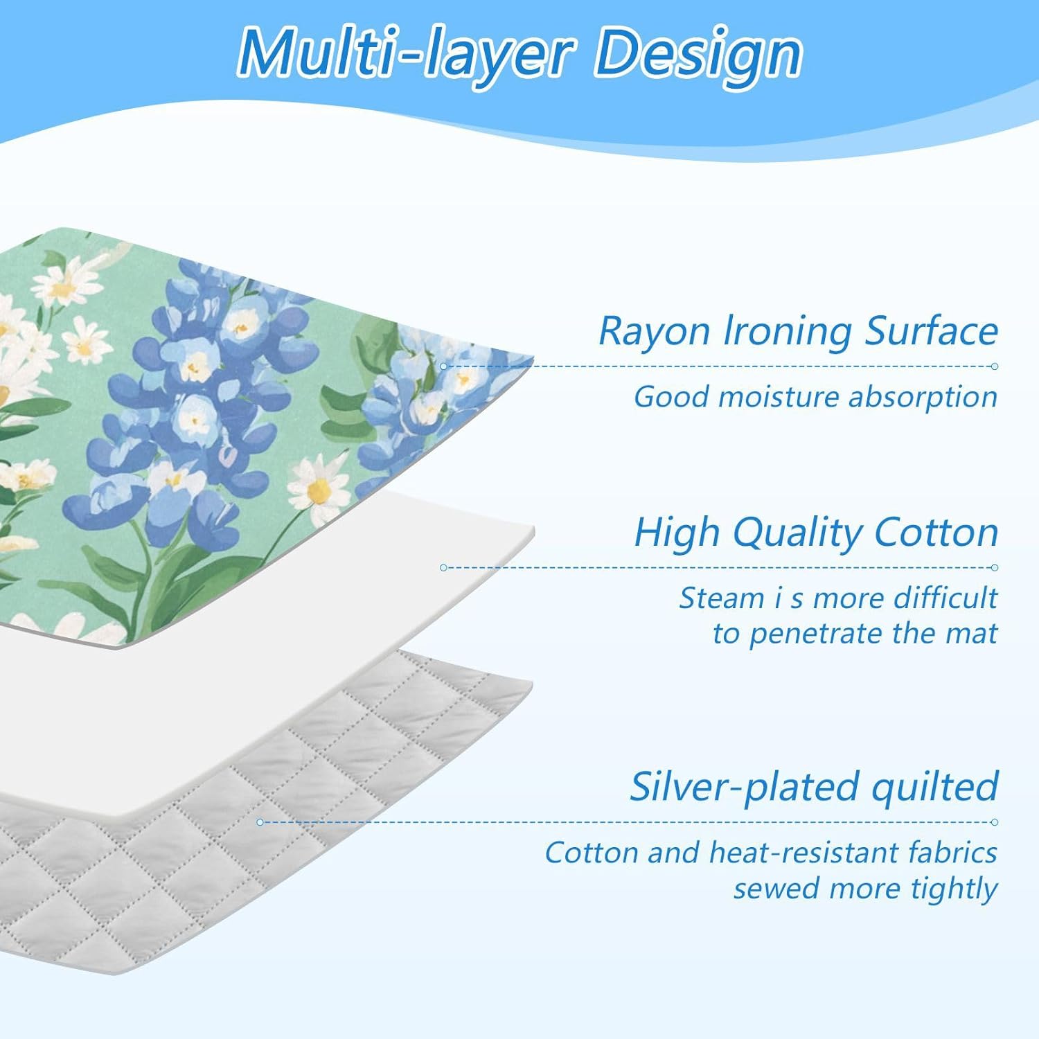 Mint Green Bluebonnet and Daisies Ironing Mat for Table top Portable Ironing Pad Blanket for Washer Dryer Countertop Travel