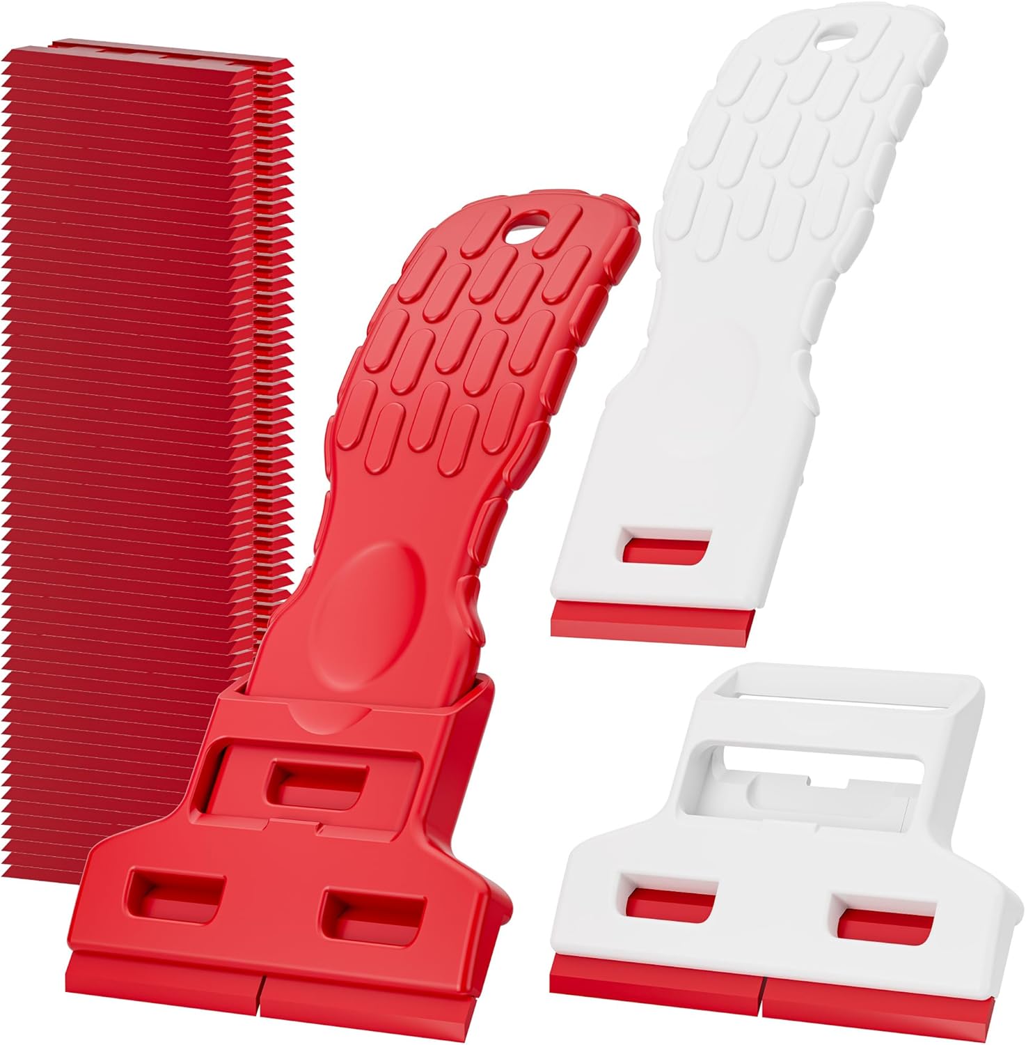 - 2 SCRAPERS INCLUDED — One red and one white scraper, identical function and textured non-slip grip; compact size fits toolbox, glovebox or kitchen drawer; ready to use out of the box.