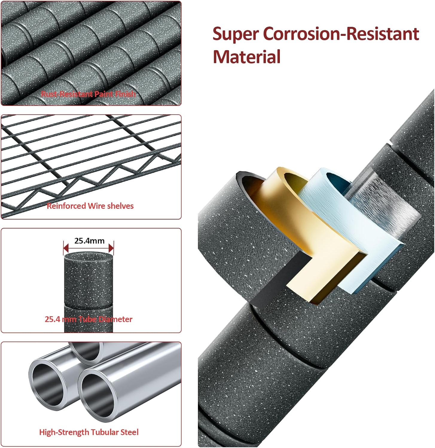 - IZEUK Storage Shelves Outdoor Wire Shelving Unit Metal Rack 4 Tier, 17.7" D x 35.43" W x 59" H, Grey