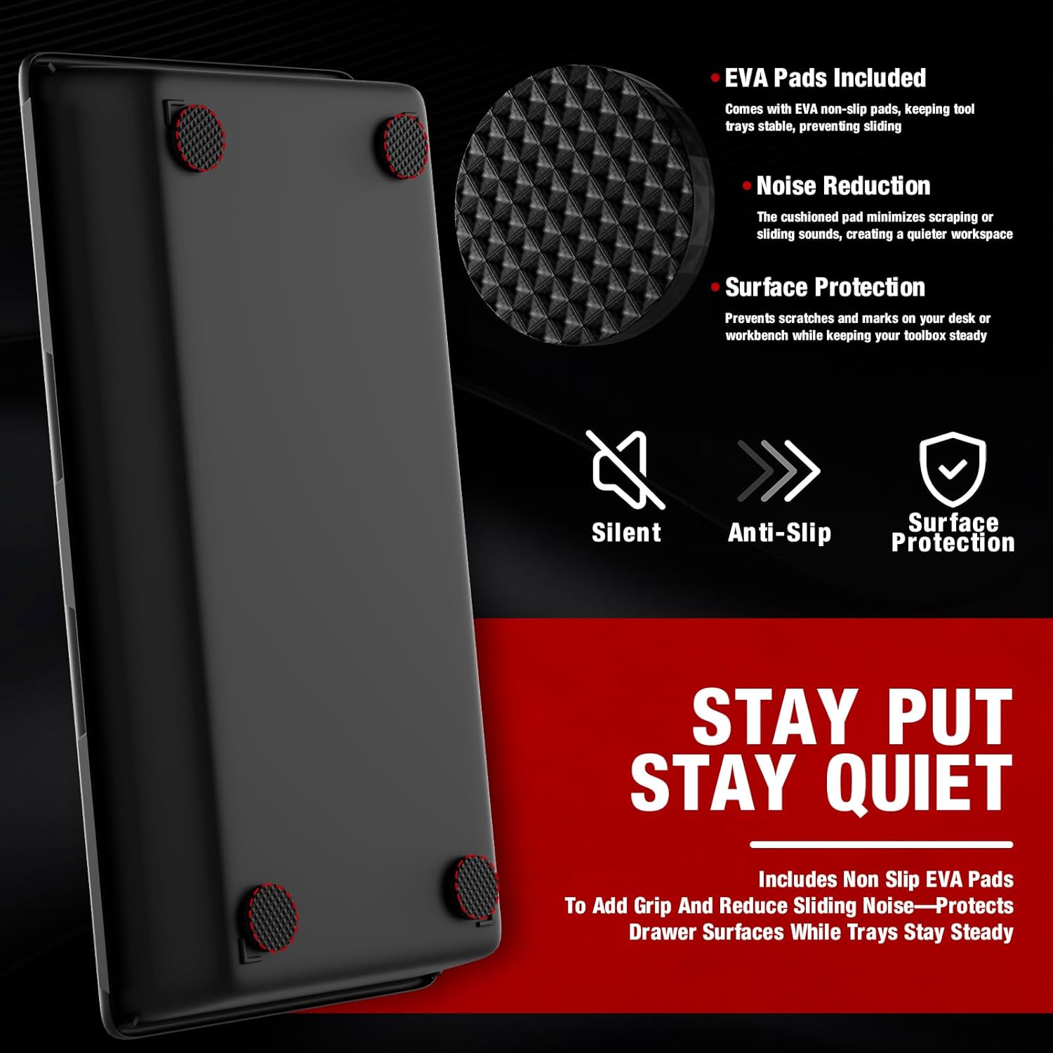 - 【Optional Non-Slip Pads for DIY Stability】Each tray comes with EVA non-slip pads for optional DIY placement to prevent toolbox organizers sliding. Compatible with toolbox drawer organizer, service truck organizer, and tool cart organizer systems.