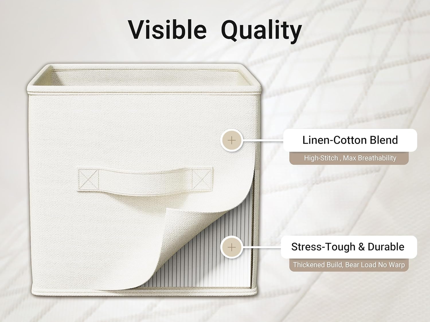 - Premium Linen Material: Crafted from high-quality, odorless linen, these fabric storage bins offer a natural, eco-friendly solution while adding a touch of elegance to your home décor. Durable and breathable, these storage cubes keep your items organized and fresh