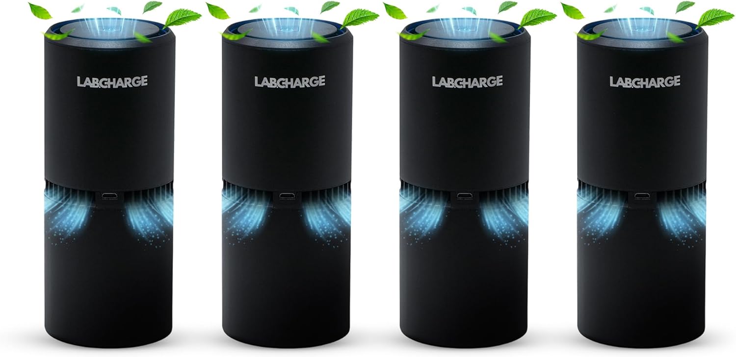 Lab Charge Small Ionic Air Purifier for Home & Bedroom – Silent HEPA Filter – Covers 250 Sq Ft - Free Cleaner for Pets, Hair, Smoke, Dust, Odors & Dander – Compact & Black Design - Pack of 4