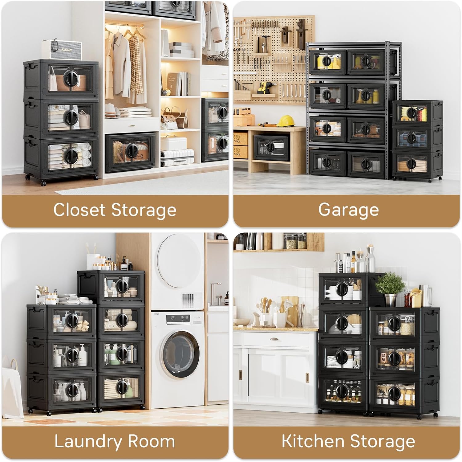 - Dual Handles & Smooth Rolling Wheels: Equipped with comfortable side handles and lockable 360° swivel wheels, this collapsible storage organizer makes lifting and moving effortless for all users