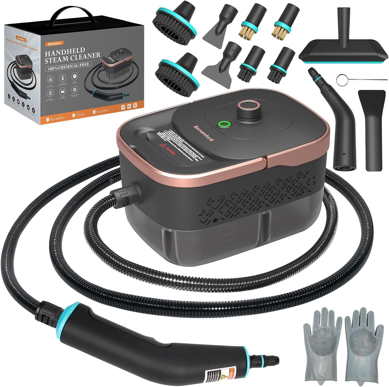 - High Pressure Steam Cleaner:This hand held steam cleaner packs a 2500W motor, heating up super fast to 221°F (105°C) in just 15 seconds and blasting out 4Bar high-pressure steam for that deep, thorough clean.The combo of high heat and pressure blasts away tough stains on tiles, grout, fabrics, kitchen grease, bathroom surfaces—anywhere! This steam cleaner for home delivers pro-level deep cleaning!