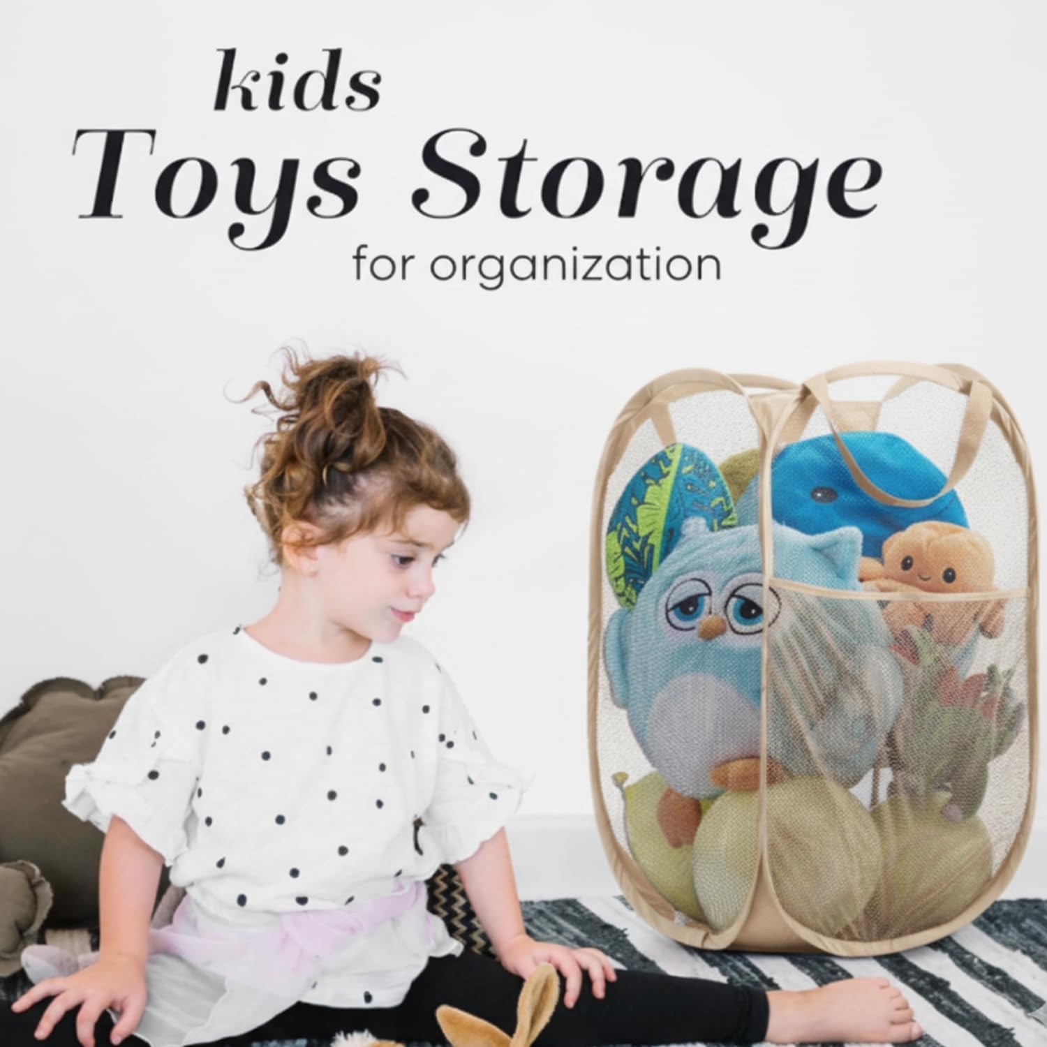 Handy Laundry Collapsible Mesh Pop Up Hamper with Wide Opening and Side Pocket - Breathable, Sturdy, Foldable, and Space-Saving Design for Clothes and Storage (Beige)