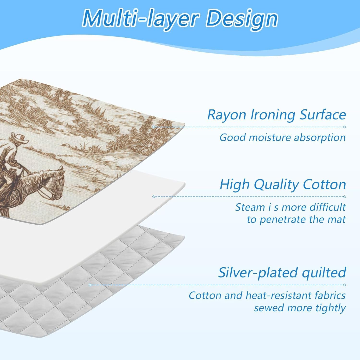 Ironing Mat Portable Ironing Pad Ironing Blanket for Table Top Heat Resistance Double-Side Using Travel Large 47.2 x 27.6 Inch Foldable Lightweight Cowboy Riding Horse Mountain Brown