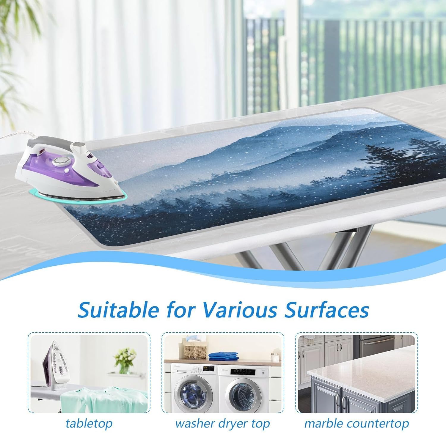 Ironing Mat Portable Ironing Pad Ironing Blanket for Table Top Heat Resistance Double-Side Using Travel Large 47.2 x 27.6 Inch Foldable Lightweight Watercolor Winter Mountain Blue