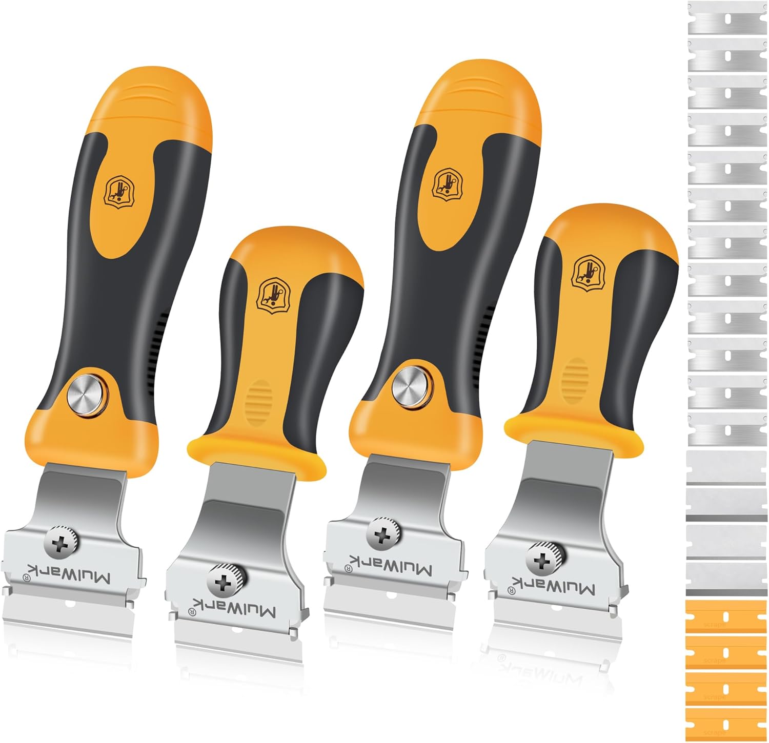MulWark Razor Blade Scraper, 4 Handles Razor Scraper Set With Extra 24pcs Blades Heavy Duty Paint & Glass Scraper Tool With Extendable Handle for Windows, Oven Cleaning & Surface Prep