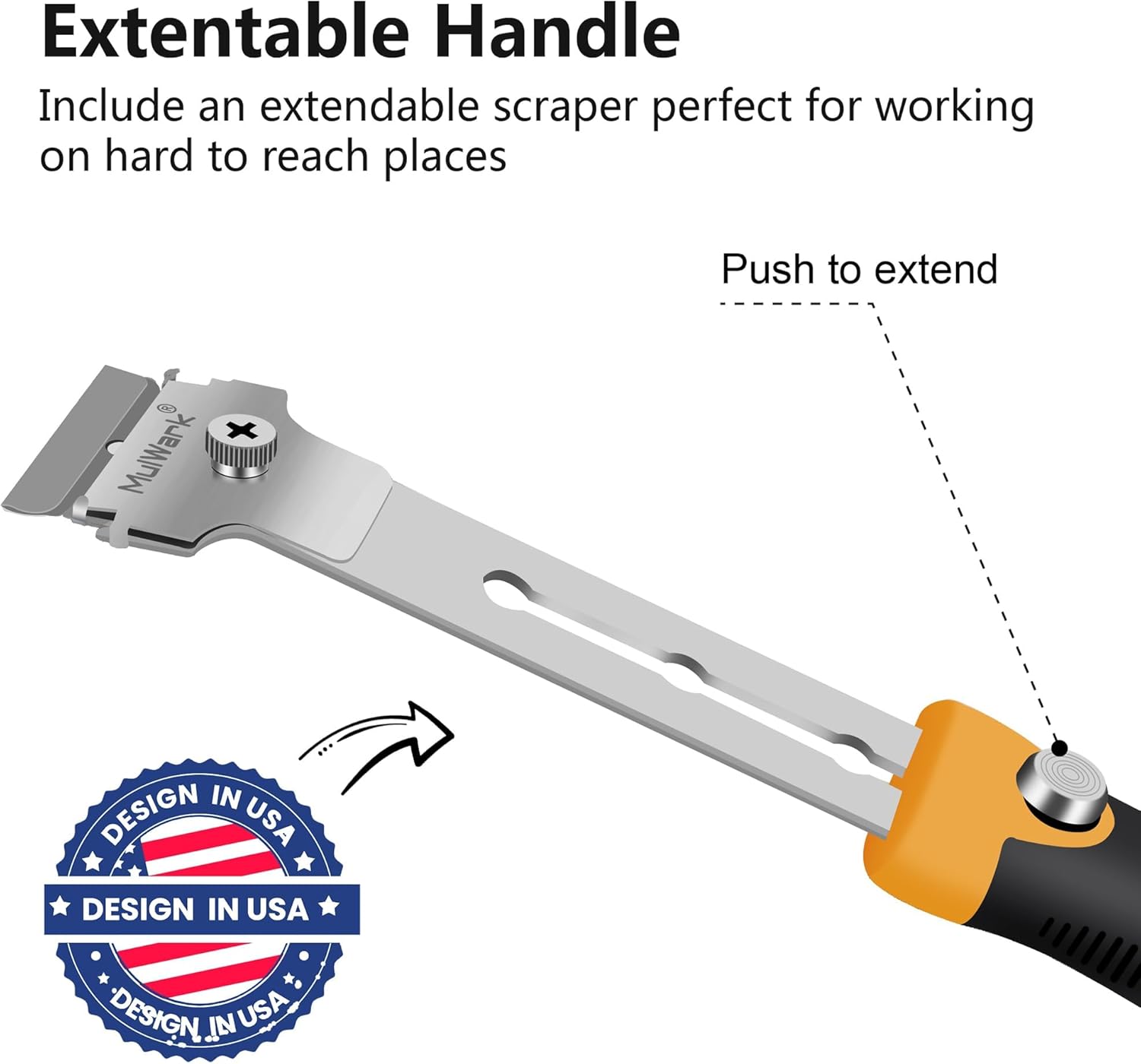 - 【Ergonomic Design】:Our scraper tool is heavy duty non-slip rubber molded handle made of TPR and tough polypropylene ensures the most comfortable cushioned grip, better control and superb longevity.The tail of the long-handle retractable paint scraper can be disassembled and assembled for storing blades, which is convenient and quick.